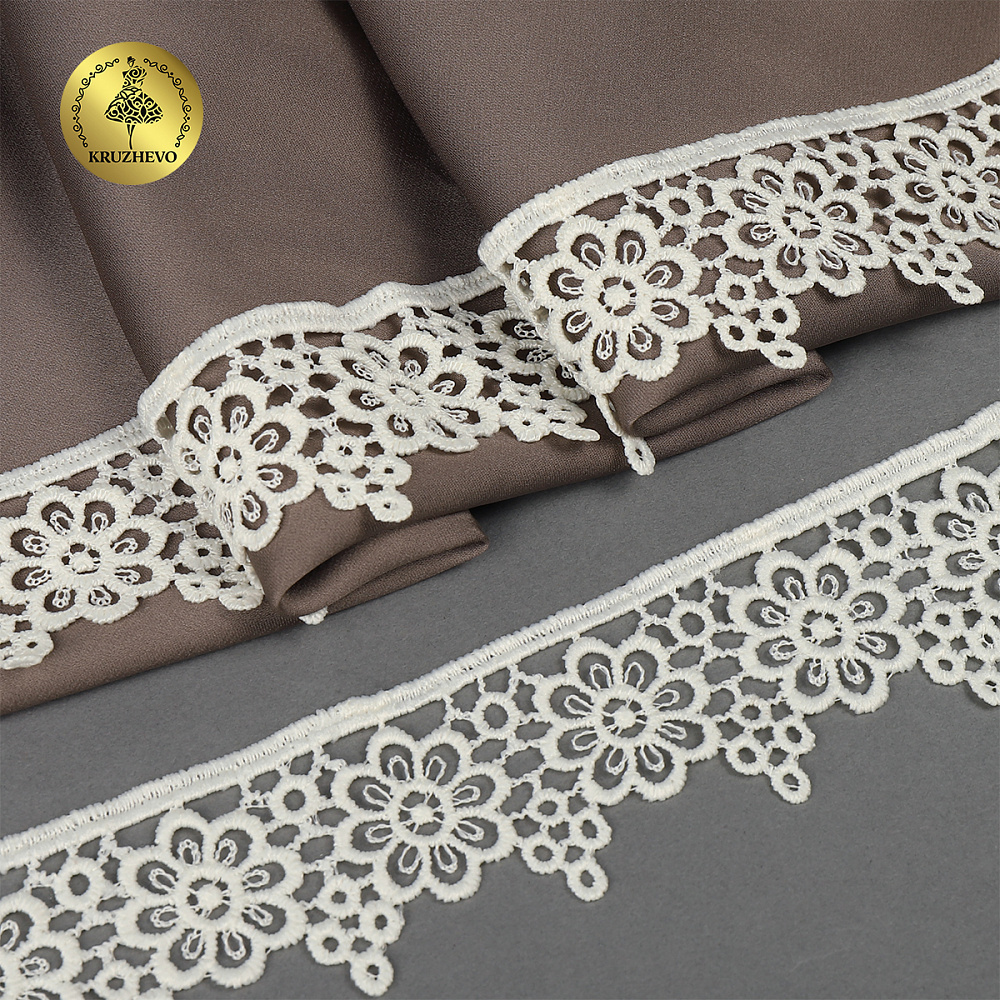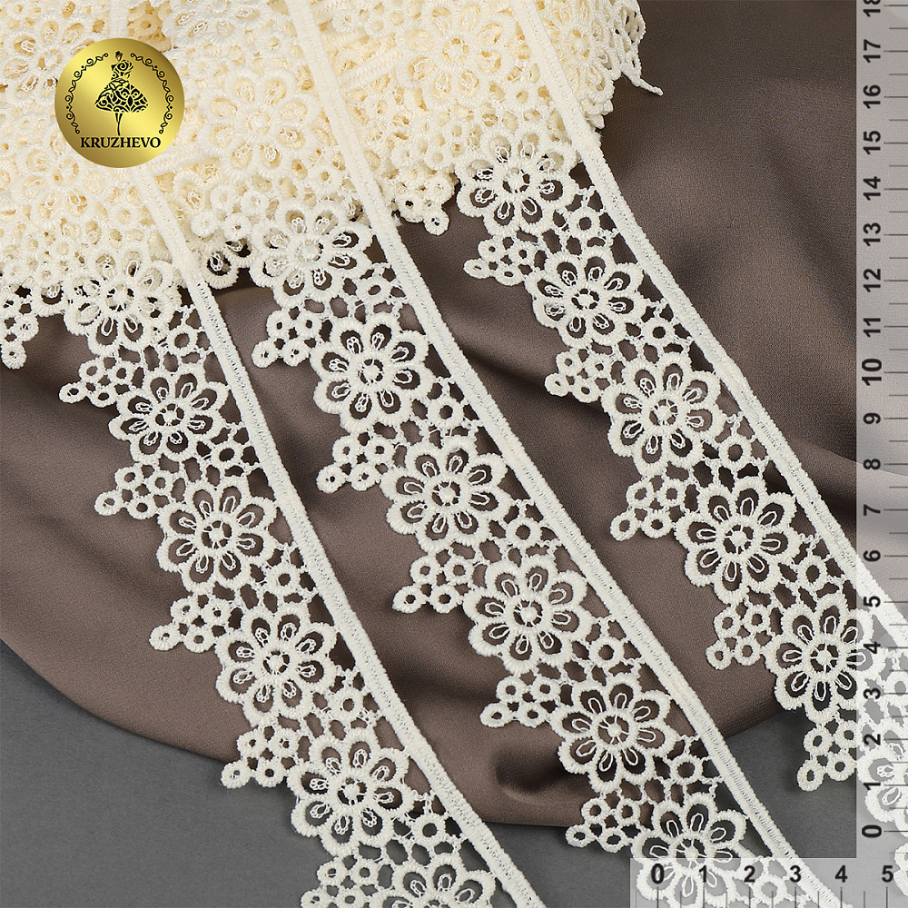 Кружево гипюр (плетёное) матовое 40 мм, цв.02 молочный, 13,71м, Kruzhevo