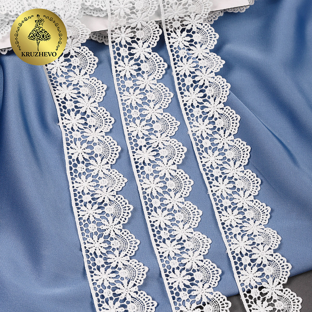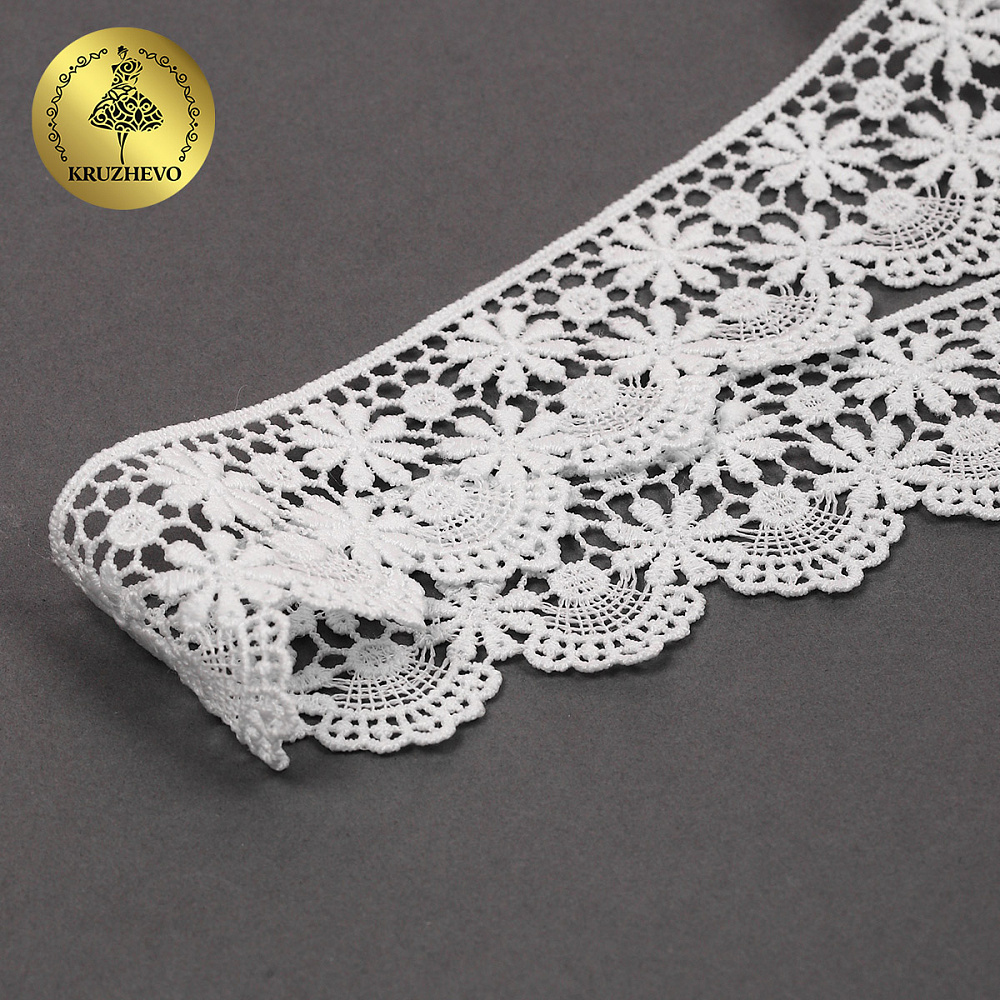 Легкое и изящное кружево гипюр c матовой нитью. Мягкое, но при этом очень прочное за счет полиэстеровых нитей. Хорошо держит форму. Имеет широкую область применения: начиная от одежды и свадебных нарядов заканчивая декором интерьера.