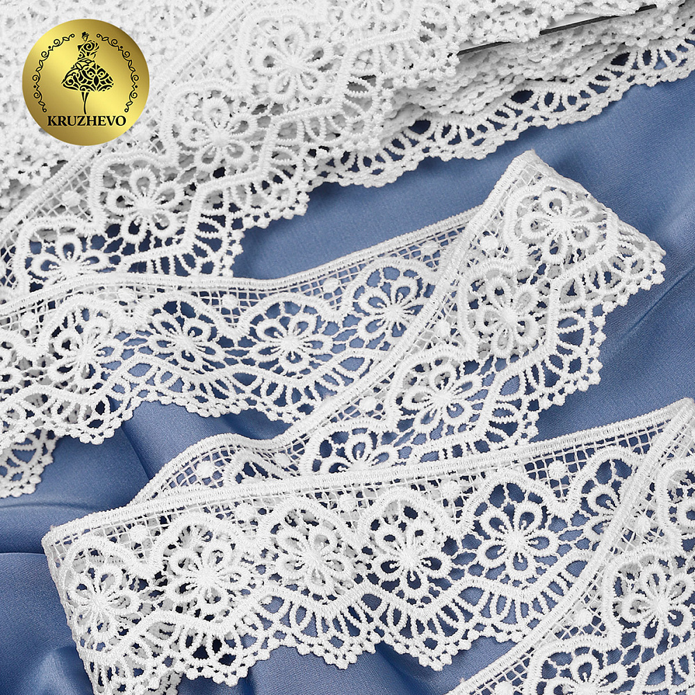 Легкое и изящное кружево гипюр c матовой нитью. Мягкое, но при этом очень прочное за счет полиэстеровых нитей. Хорошо держит форму. Имеет широкую область применения: начиная от одежды и свадебных нарядов заканчивая декором интерьера.