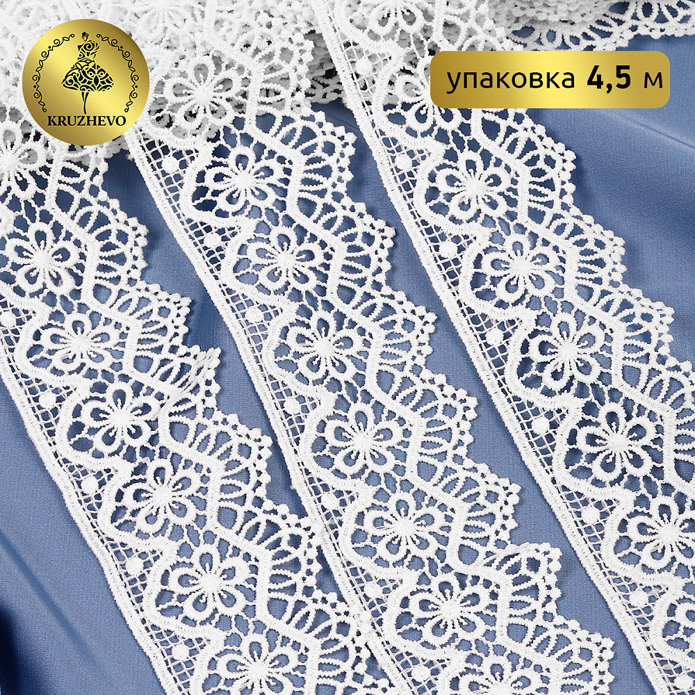 Кружево гипюр (плетёное) 50 мм, матовая нить TBY.0871, цв.белый уп.4.5м, Kruzhevo