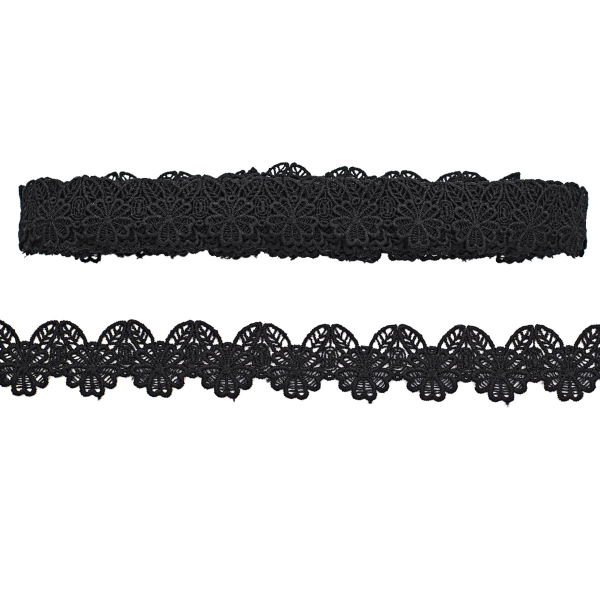 Кружево гипюр (плетёное) 30 мм / 13.72 метра, матовое, черный, LA-018