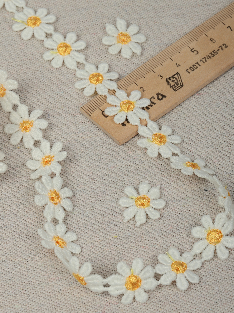 Кружево гипюр (плетёное) ромашка 15 мм / 13.71 метра, TBY.12243/1, цв.белый+желтый, Kruzhevo