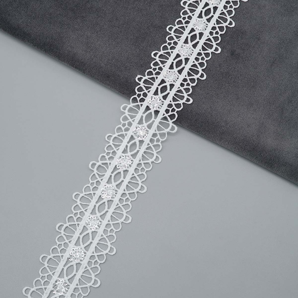 Кружево гипюр (плетёное) 35 мм, / 13.71 метра, с пайетками, белый
