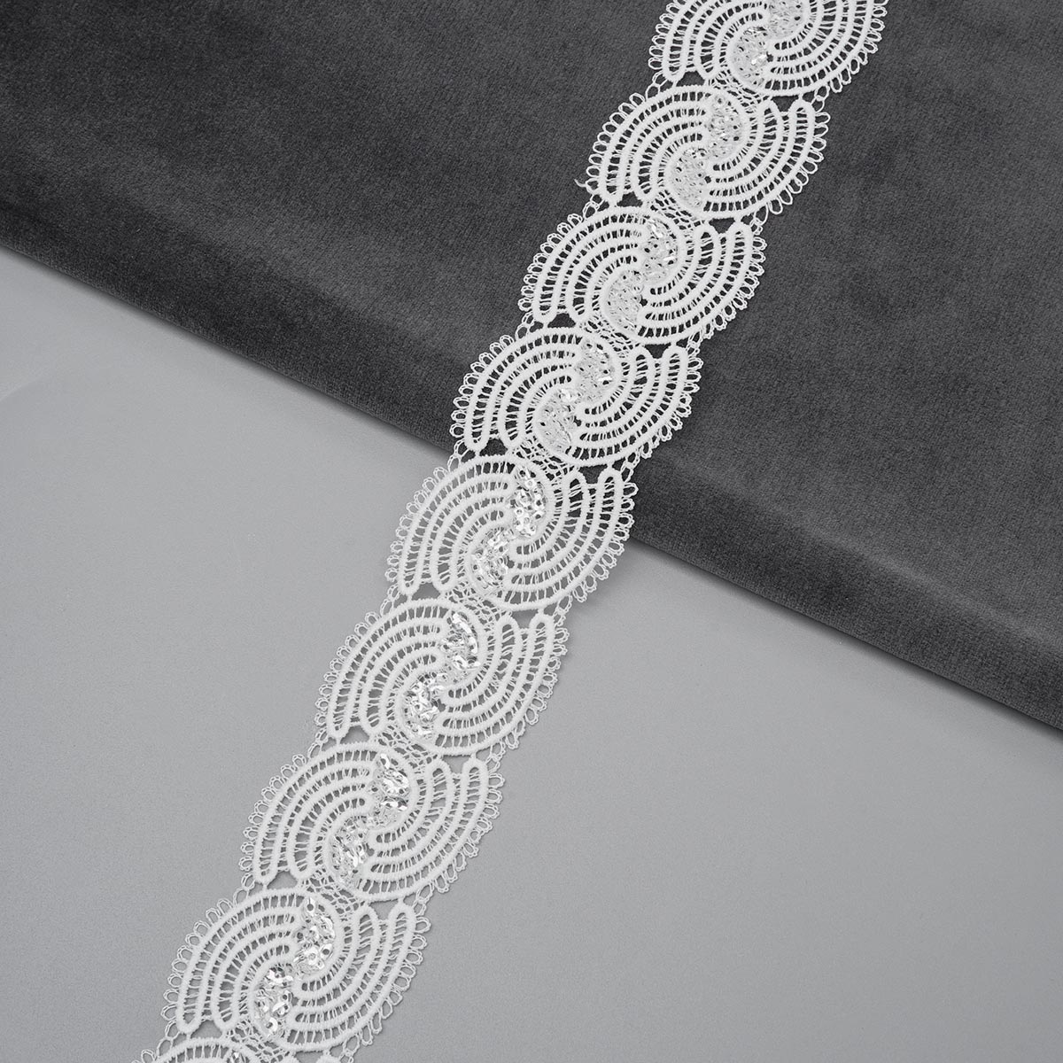 Кружево гипюр (плетёное) 40 мм, / 13.71 метра, с пайетками, белый