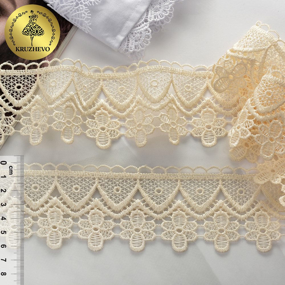 Кружево гипюр (плетёное) с цветами 60 мм, 27294 цв.003 молочный уп.13.71м, Kruzhevo