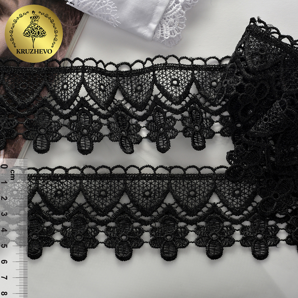 Кружево гипюр (плетёное) с цветами 60 мм, 27294 цв.019 черный уп.13.71м, Kruzhevo