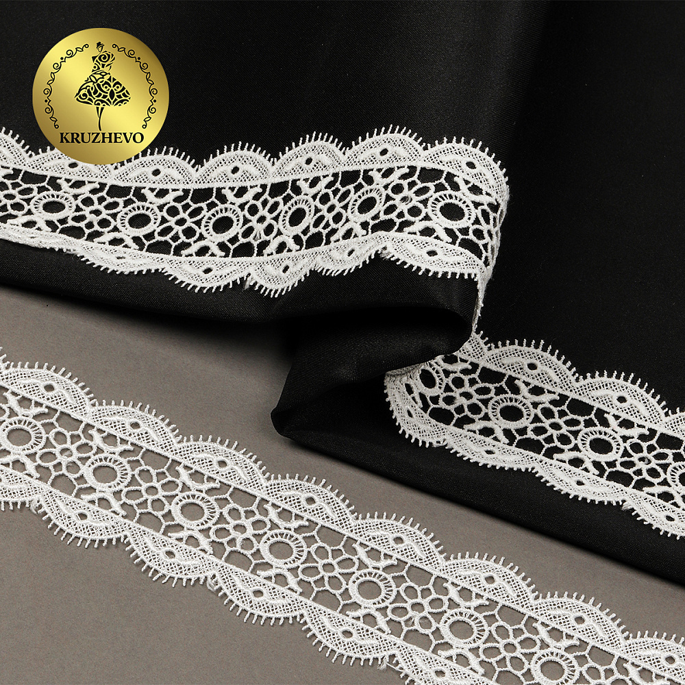 Легкое, ажурное гипюровое кружево. Имеет широкую область применения: начиная от одежды и свадебных нарядов заканчивая декором интерьера.