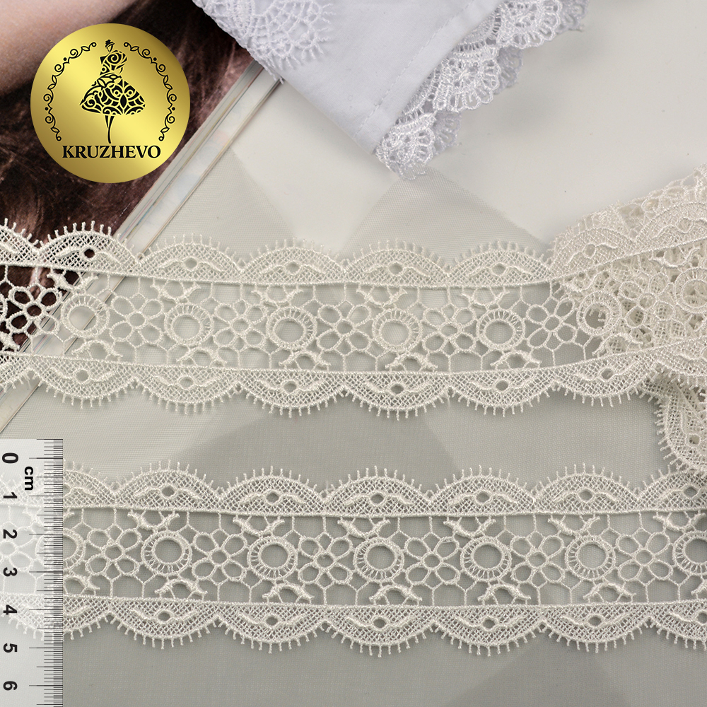 Кружево гипюр (плетёное) 50 мм, TR.SUN.08, цв.02 молочный, уп.9м, Kruzhevo