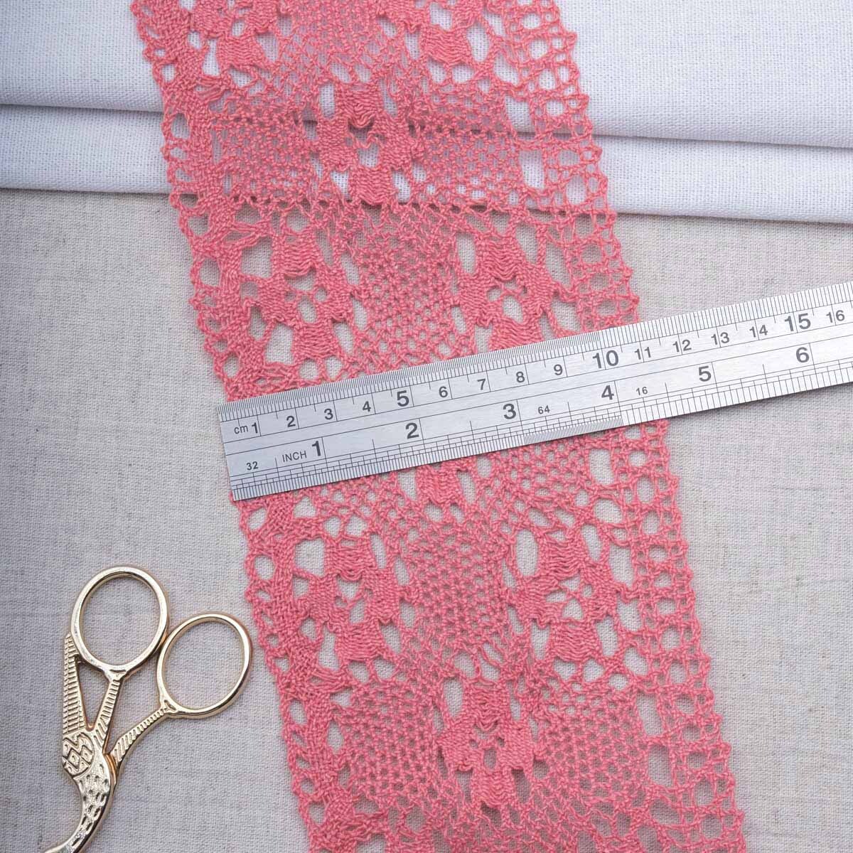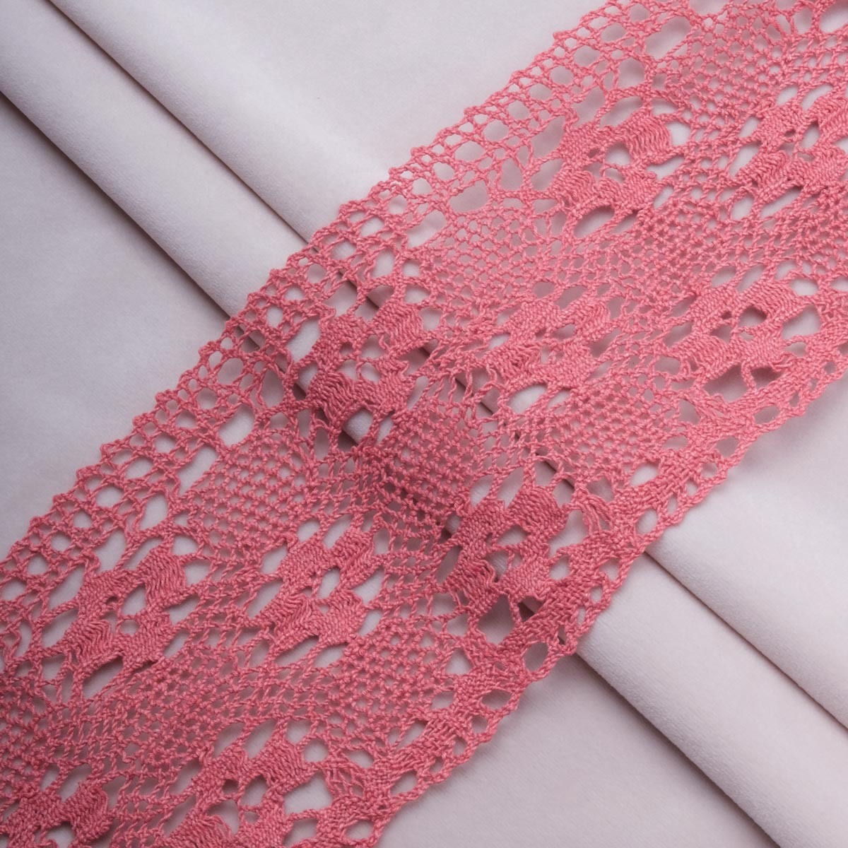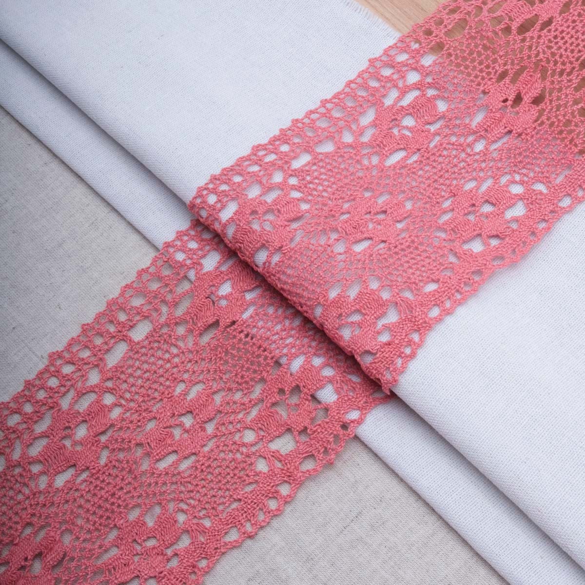 Кружево вязаное (тесьма) широкое 125 мм / 25 метров, хлопок, рис. 125.01.038, коралловый, С3749Г17