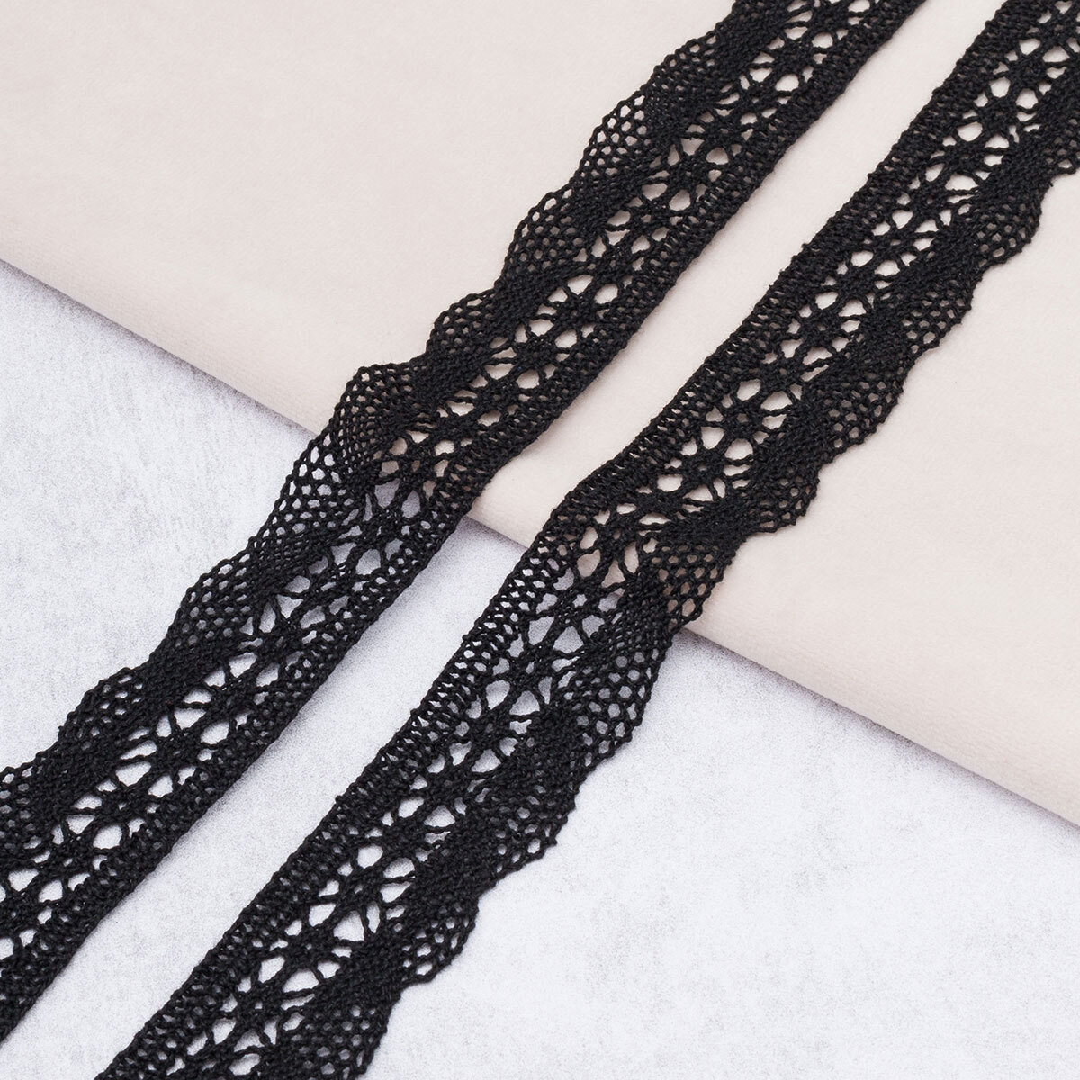 Кружево вязаное (тесьма) 27 мм / 10 метров, хлопок, черный