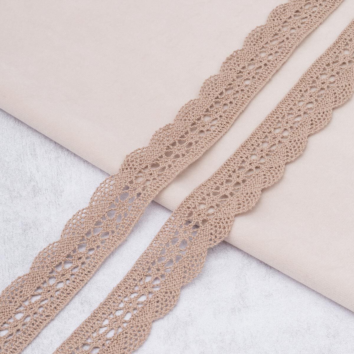 Кружево вязаное (тесьма) 27 мм / 10 метров, хлопок, F294 капучино