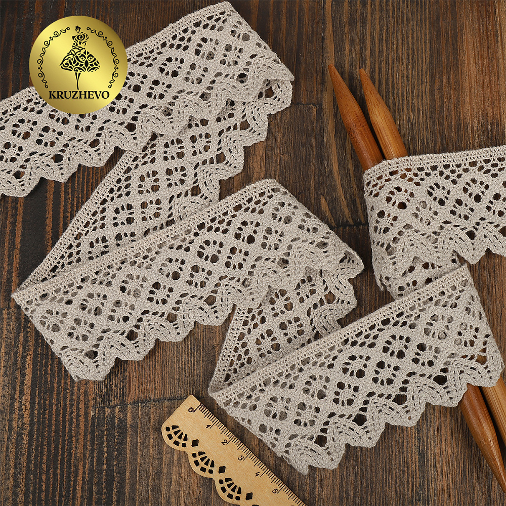 Кружево вязаное (тесьма) хлопковое 50 мм / 10 метров, диз.1003 цв.09 лен, Kruzhevo