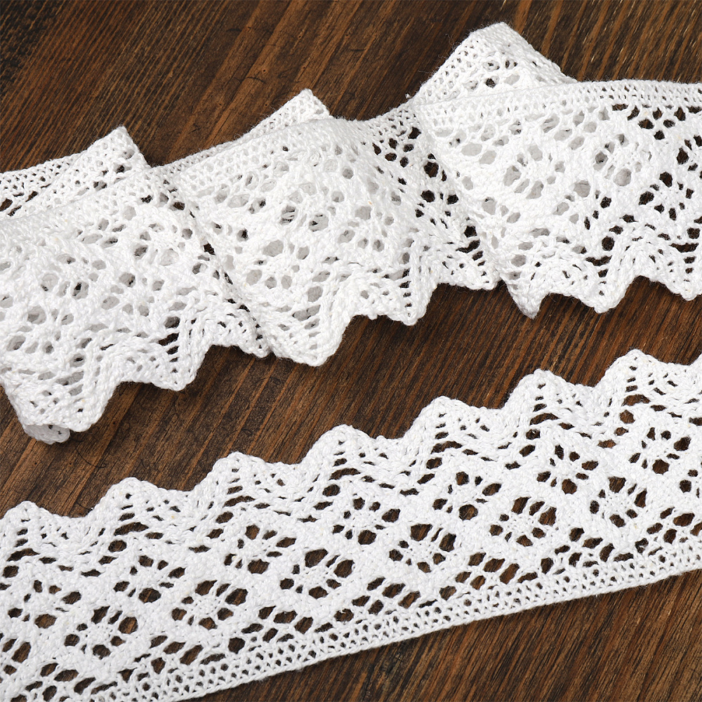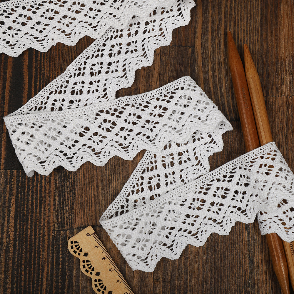 Кружево вязаное (тесьма) 50 мм / 10 метров, TBY.1003 цв.01 белый, Kruzhevo