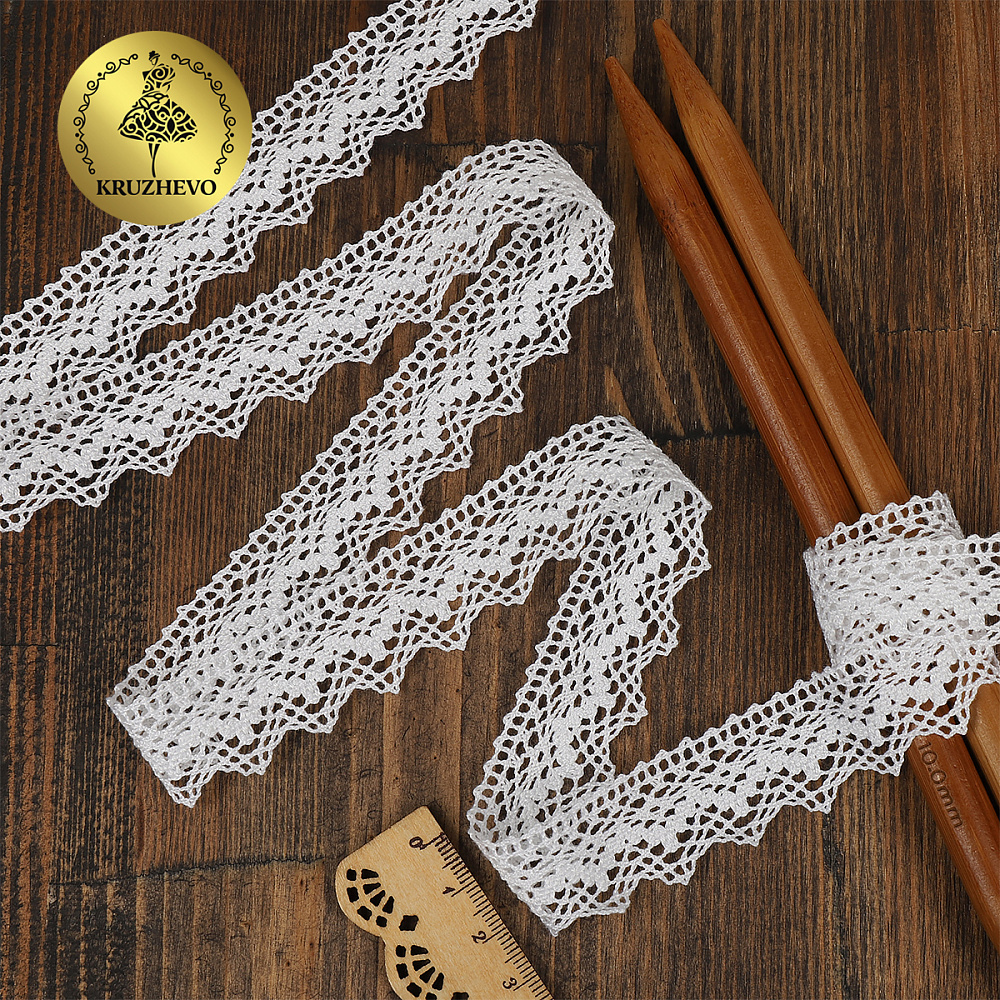 Кружево вязаное (тесьма) 25 мм, диз.3207 цв.01 белый, 3 метра, Kruzhevo