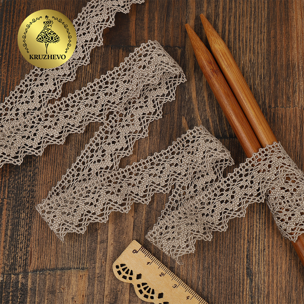 Кружево вязаное (тесьма) 25 мм / 10 метров, диз.3207 цв.09 лен, Kruzhevo
