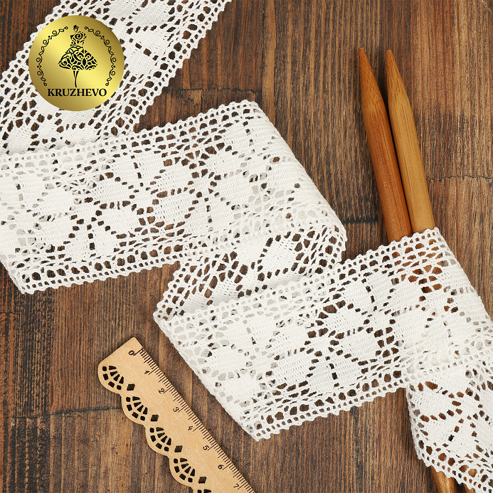 Кружево вязаное (тесьма) 60 мм, TR.A411, цв.белый, 3 метра, Kruzhevo