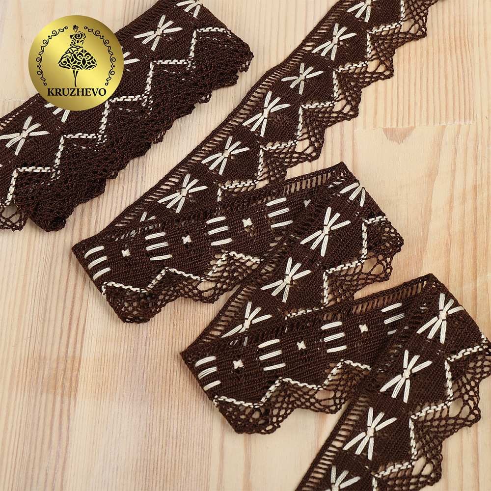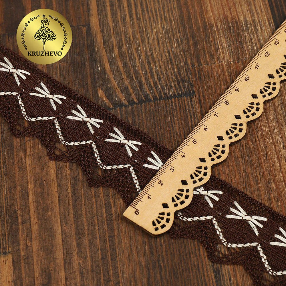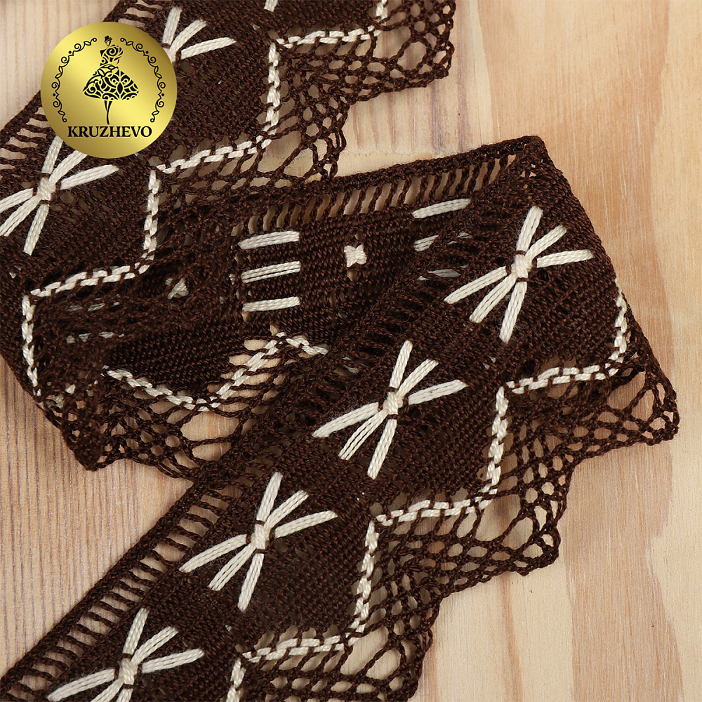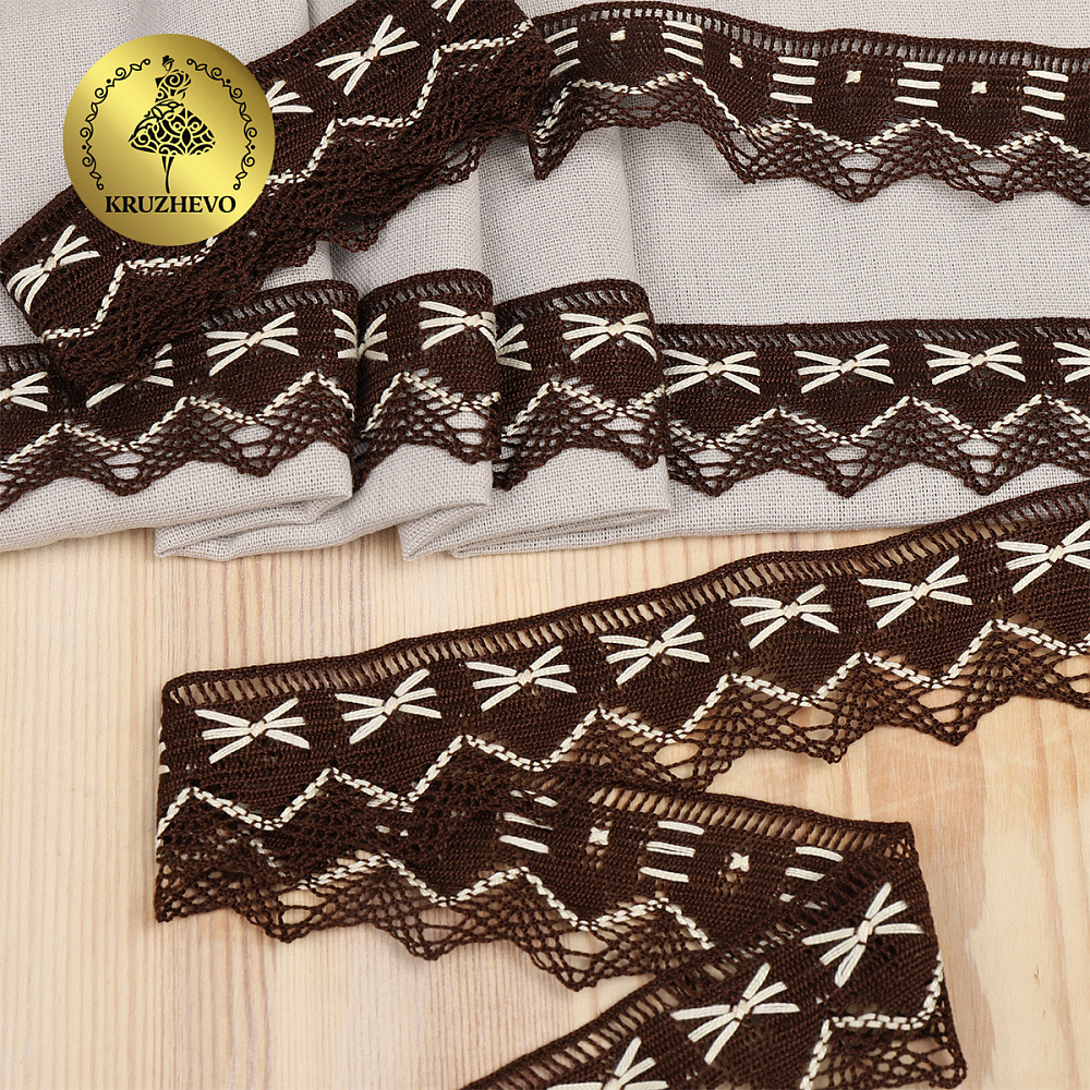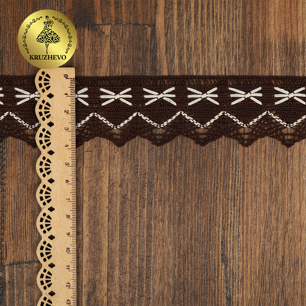 Кружево вязаное (тесьма) 37 мм, диз.K-10034, цв.коричневый+белый, 3м, Kruzhevo