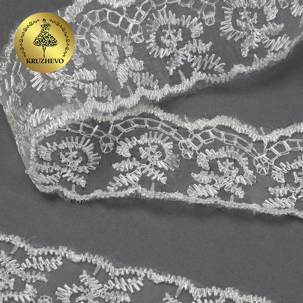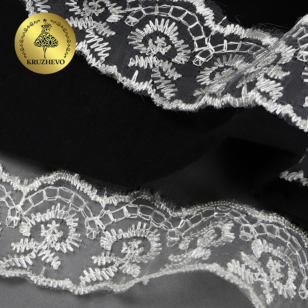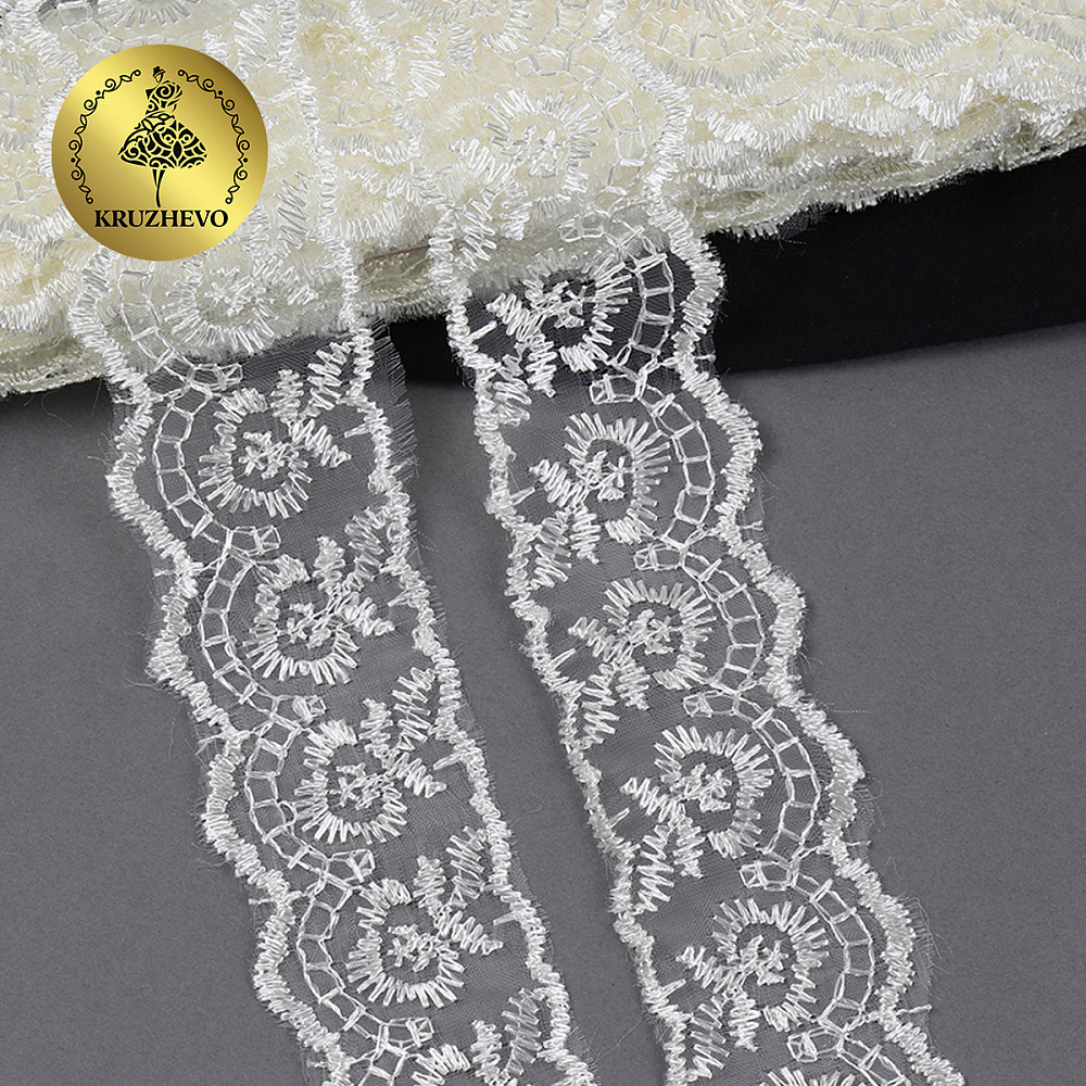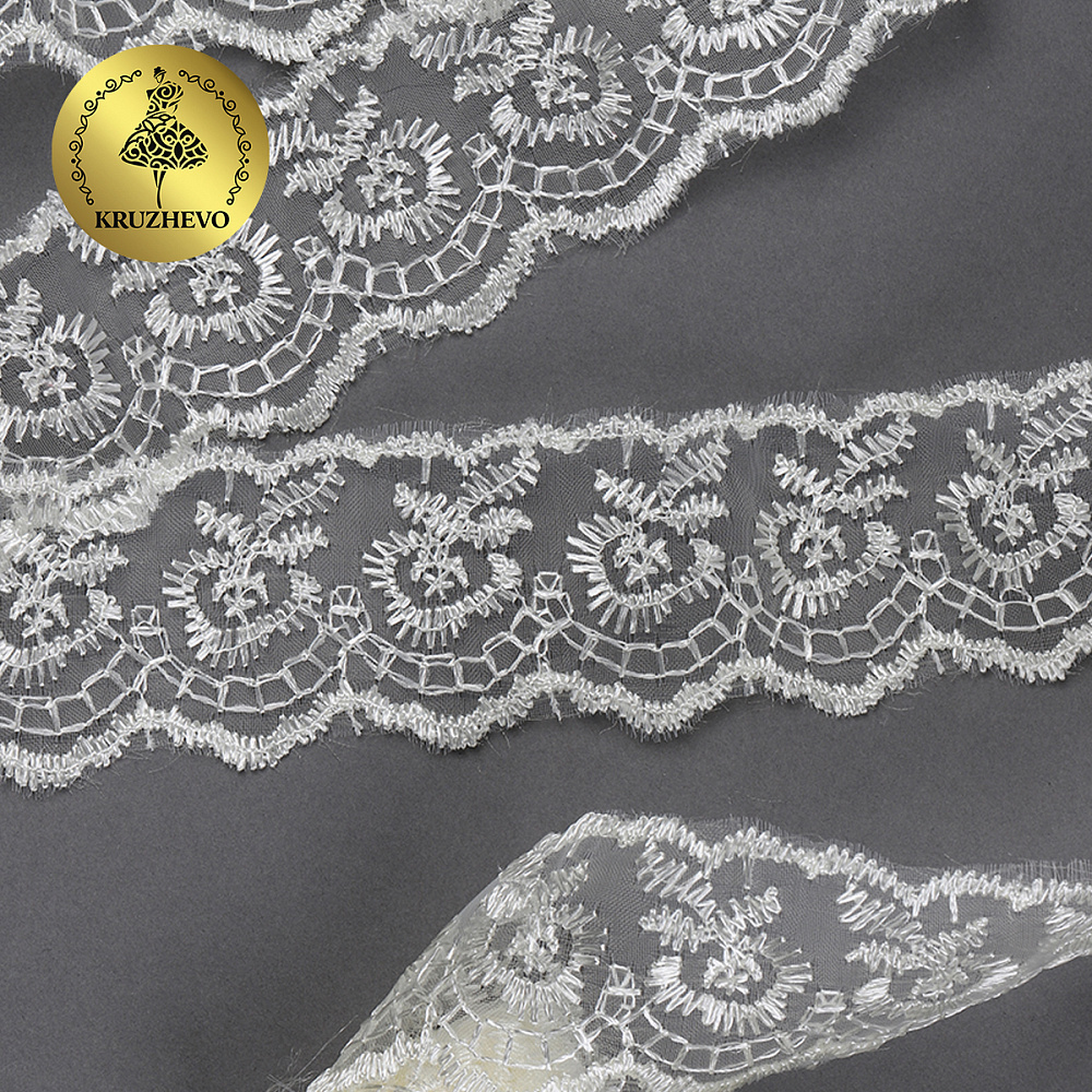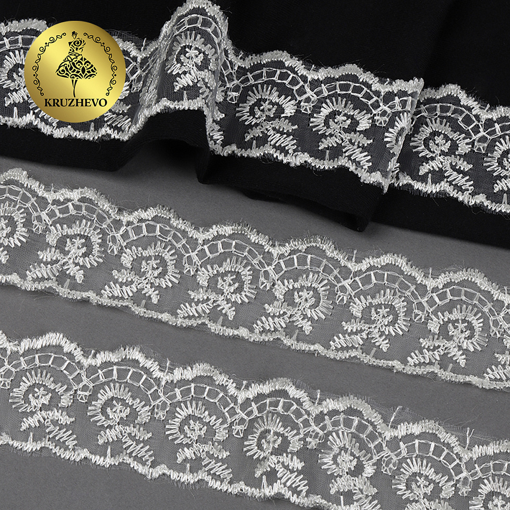 Роскошное кружево из капроновой нити. Оно не сминается и не растягивается, что обеспечивает роскошный вид на протяжении всего срока службы готового изделия, а прекрасный мотив полотна, выполненный в изящном стиле с извилистыми и плавными очертаниями рисунка, позволит придать шарма любому образу, который Вы пожелаете создать. Кружево из капрона используется для пошива и декора одежды, белья, декоративных изделий и предметов интерьера, оформления подарков, изготовления бижутерии.