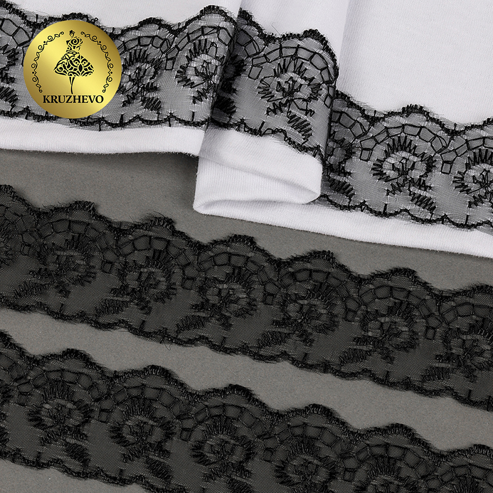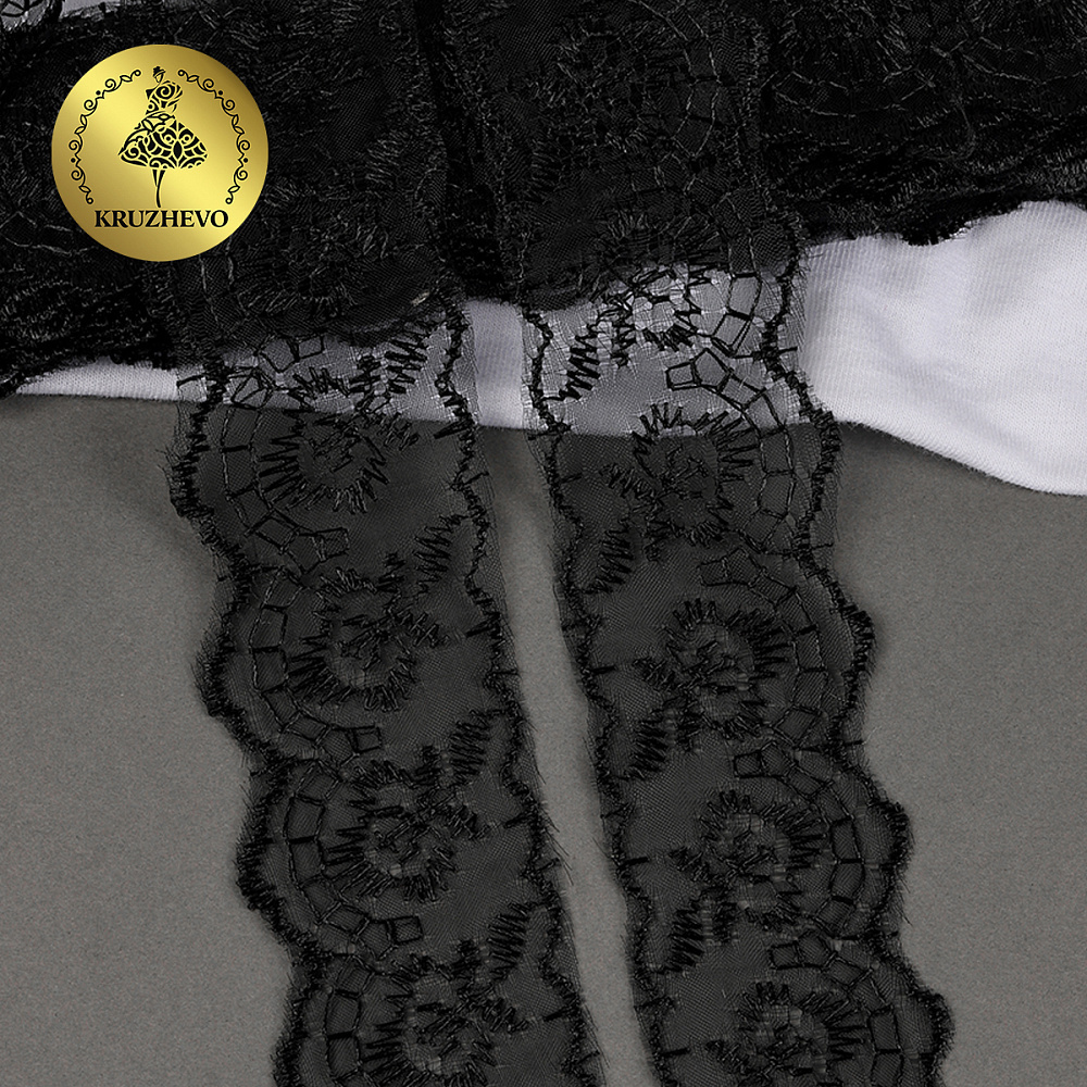 Роскошное кружево из капроновой нити. Оно не сминается и не растягивается, что обеспечивает роскошный вид на протяжении всего срока службы готового изделия, а прекрасный мотив полотна, выполненный в изящном стиле с извилистыми и плавными очертаниями рисунка, позволит придать шарма любому образу, который Вы пожелаете создать. Кружево из капрона используется для пошива и декора одежды, белья, декоративных изделий и предметов интерьера, оформления подарков, изготовления бижутерии.