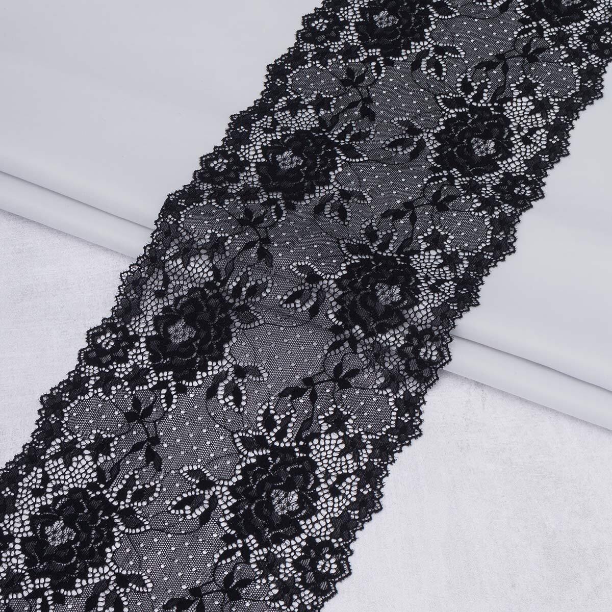 Кружево бельевое эластичное 175 мм / 10 метров, 1255, цв. 170 чёрный, 28112, Lauma