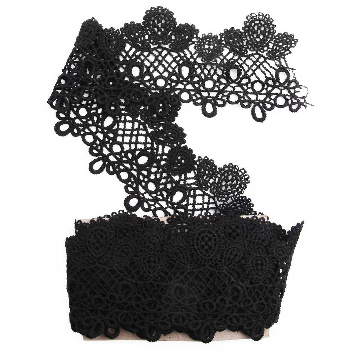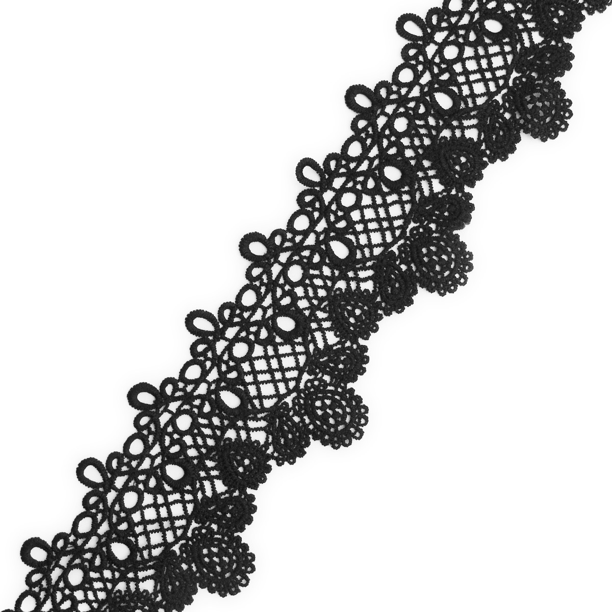Кружево гипюр (плетёное) 95 мм / 3 метра, матовое, C580 черный