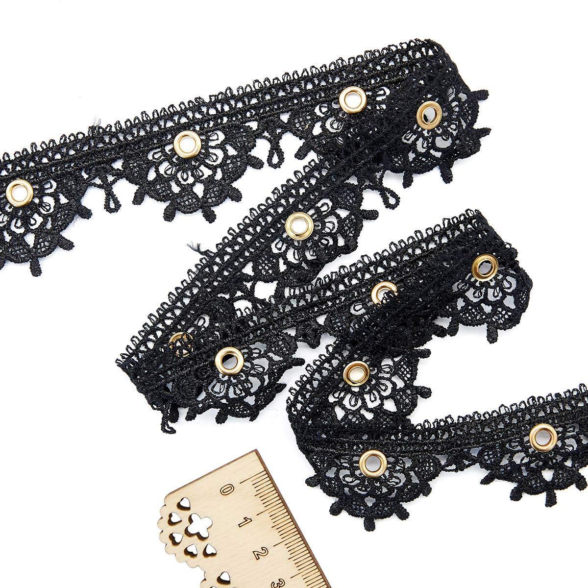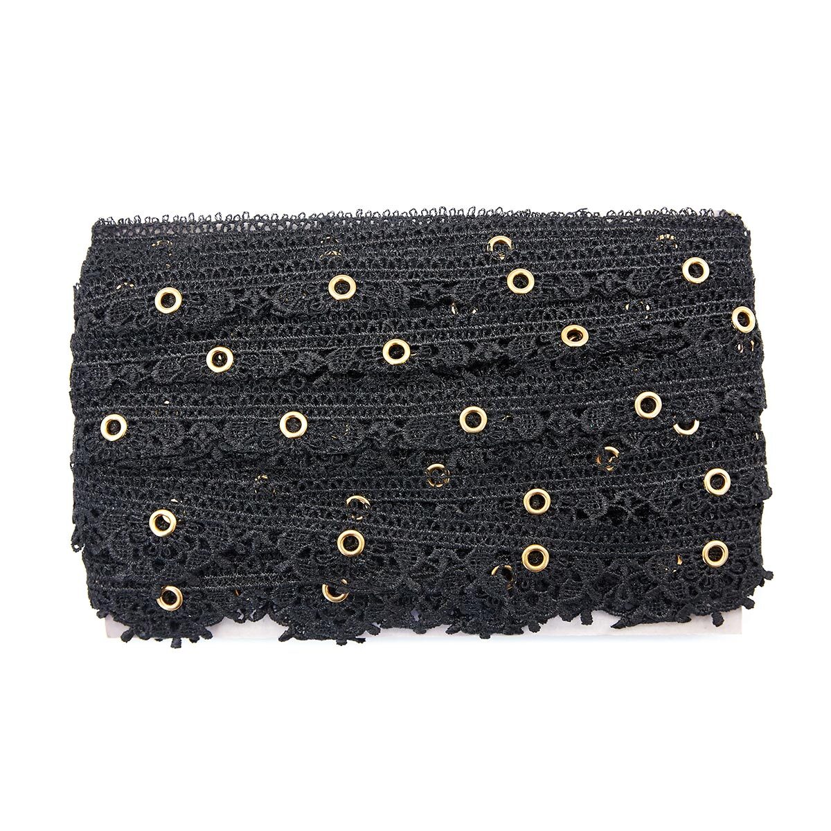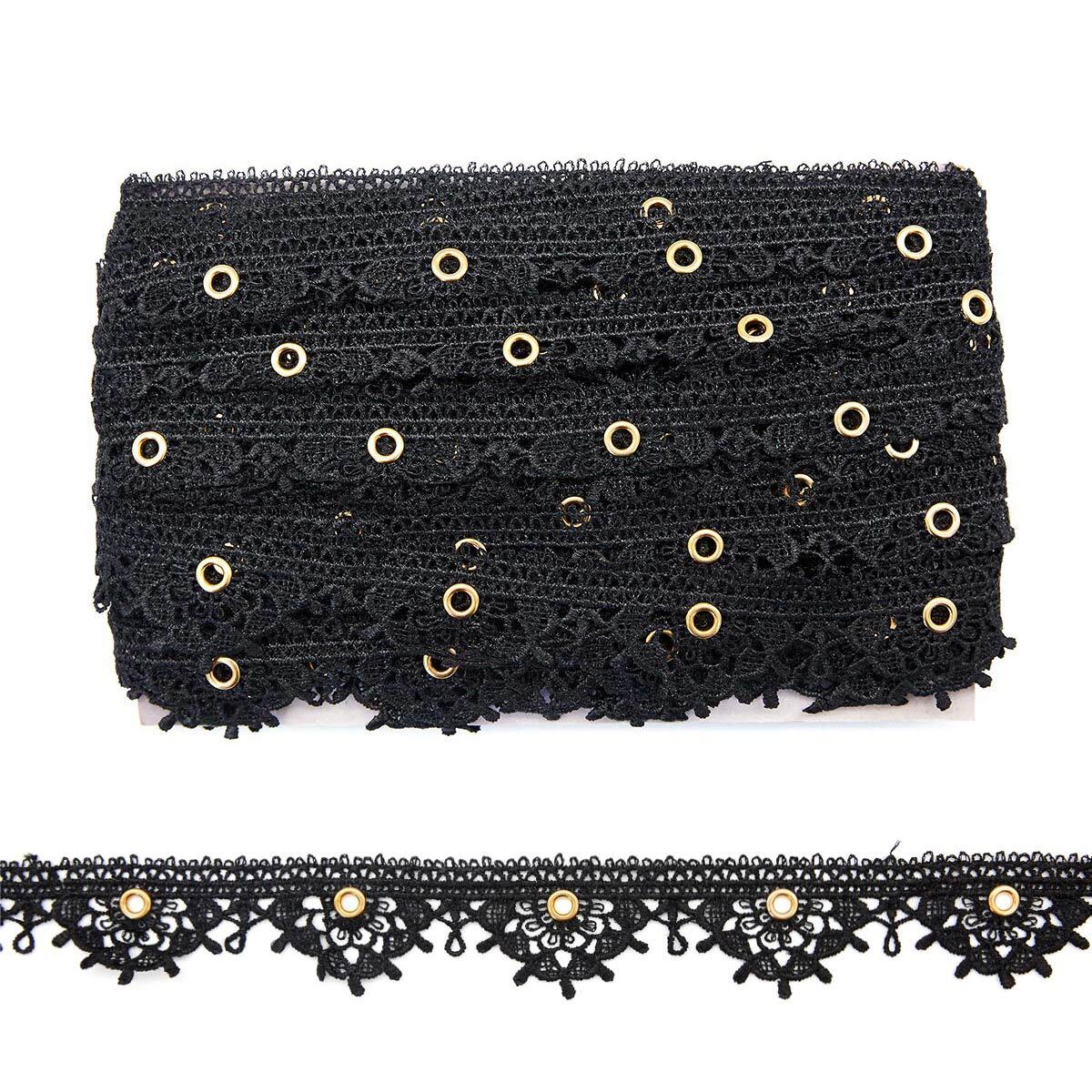 Кружево гипюр (плетёное) (матовое) 35 мм, с люверсами, черный, 13.72 м, S090716