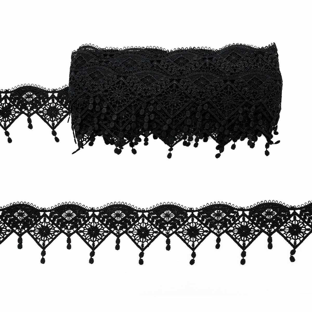 Кружево гипюр (плетёное) 55 мм / 9.14 метра, матовое с подвесками, черный, 3AR799