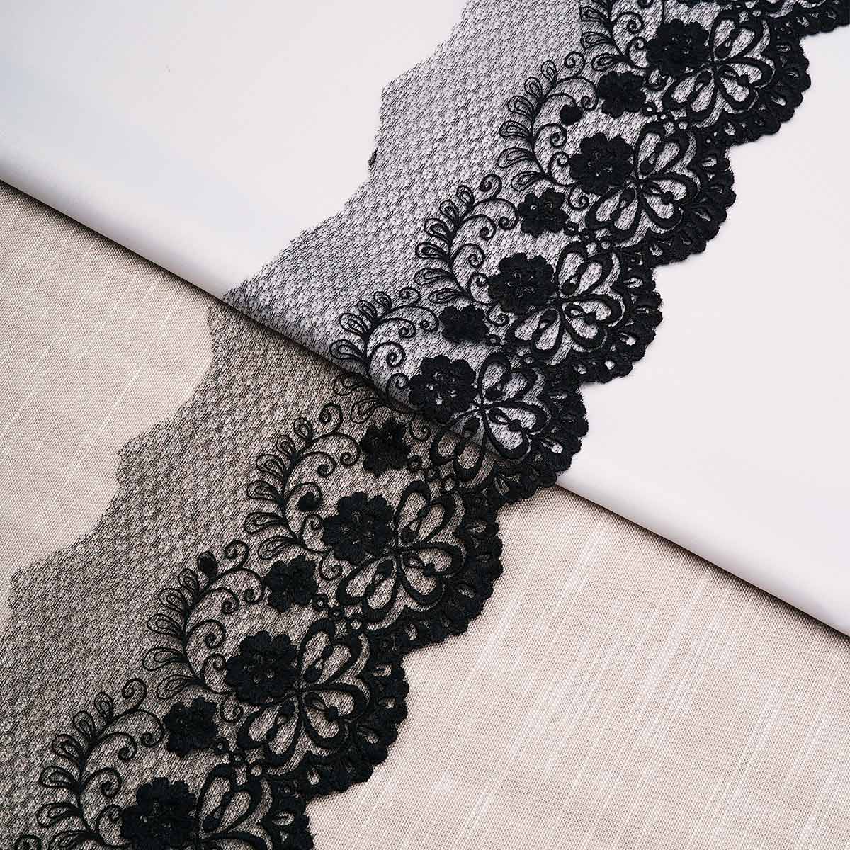 Кружево на сетке 105 мм / 3.4 метра ±4 см, черный, 3AR3490