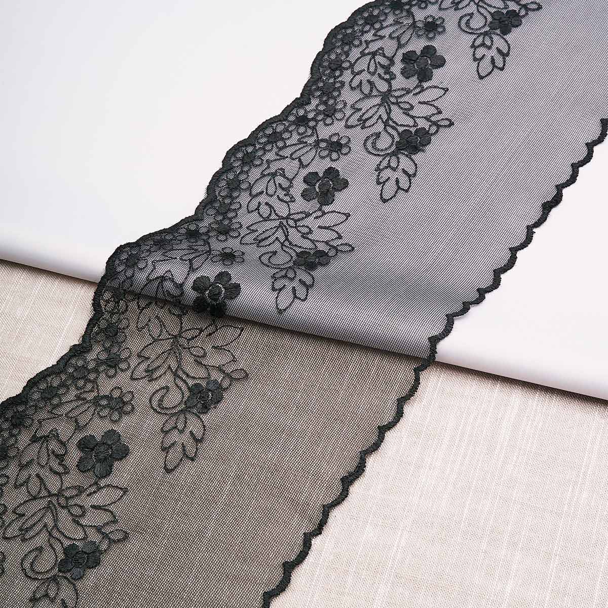 Кружево на сетке 140 мм / 3.4 метра ±4 см, черный, 3AR3745