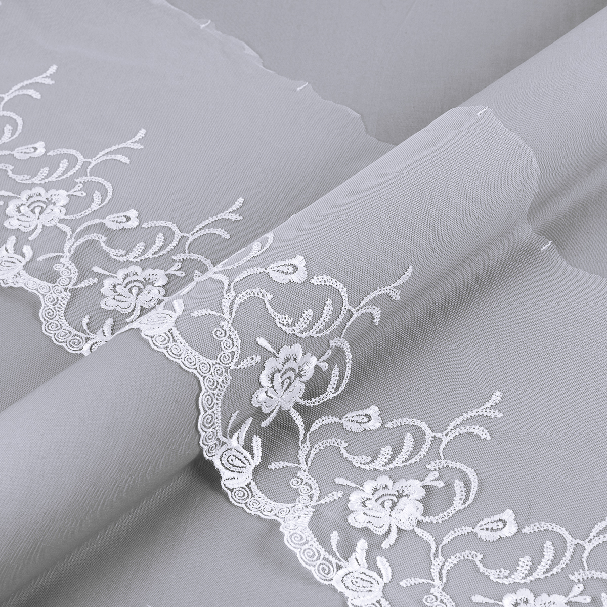Кружево на сетке представляет собой кружевное полотно, основа которого сетка или фатин. применяется для декоративной отделки лёгкой женской одежды и домашнего текстиля.