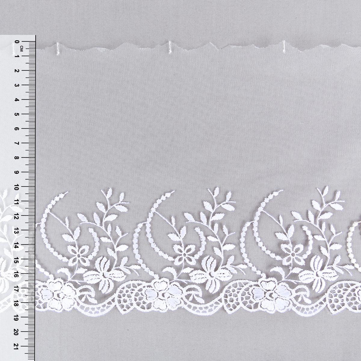Кружево на сетке 190 мм / 10 м, белый, Gamma GKM-1904
