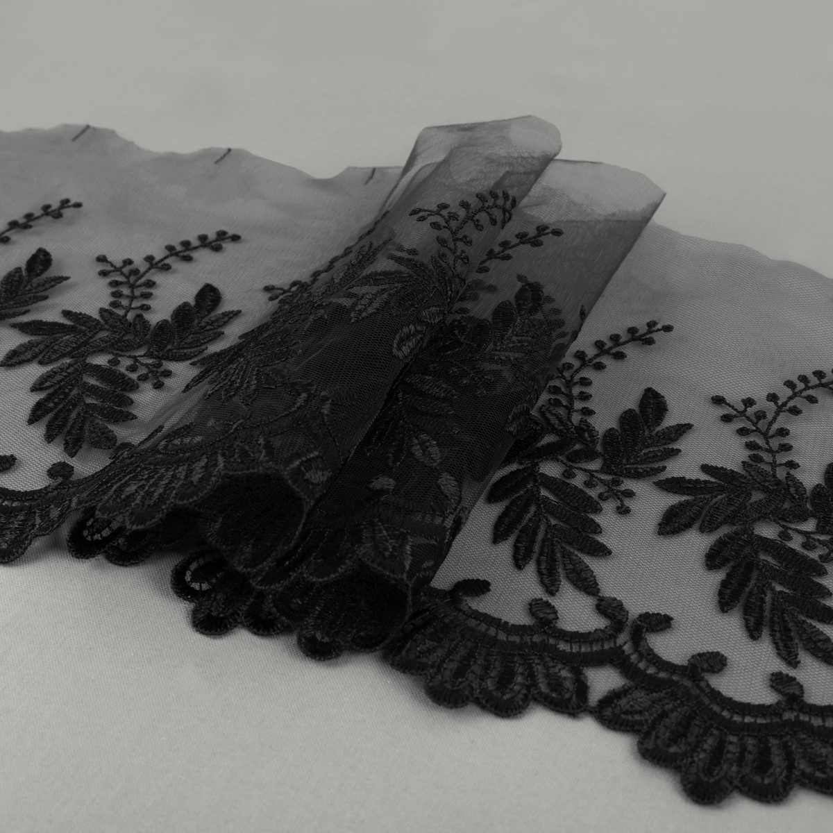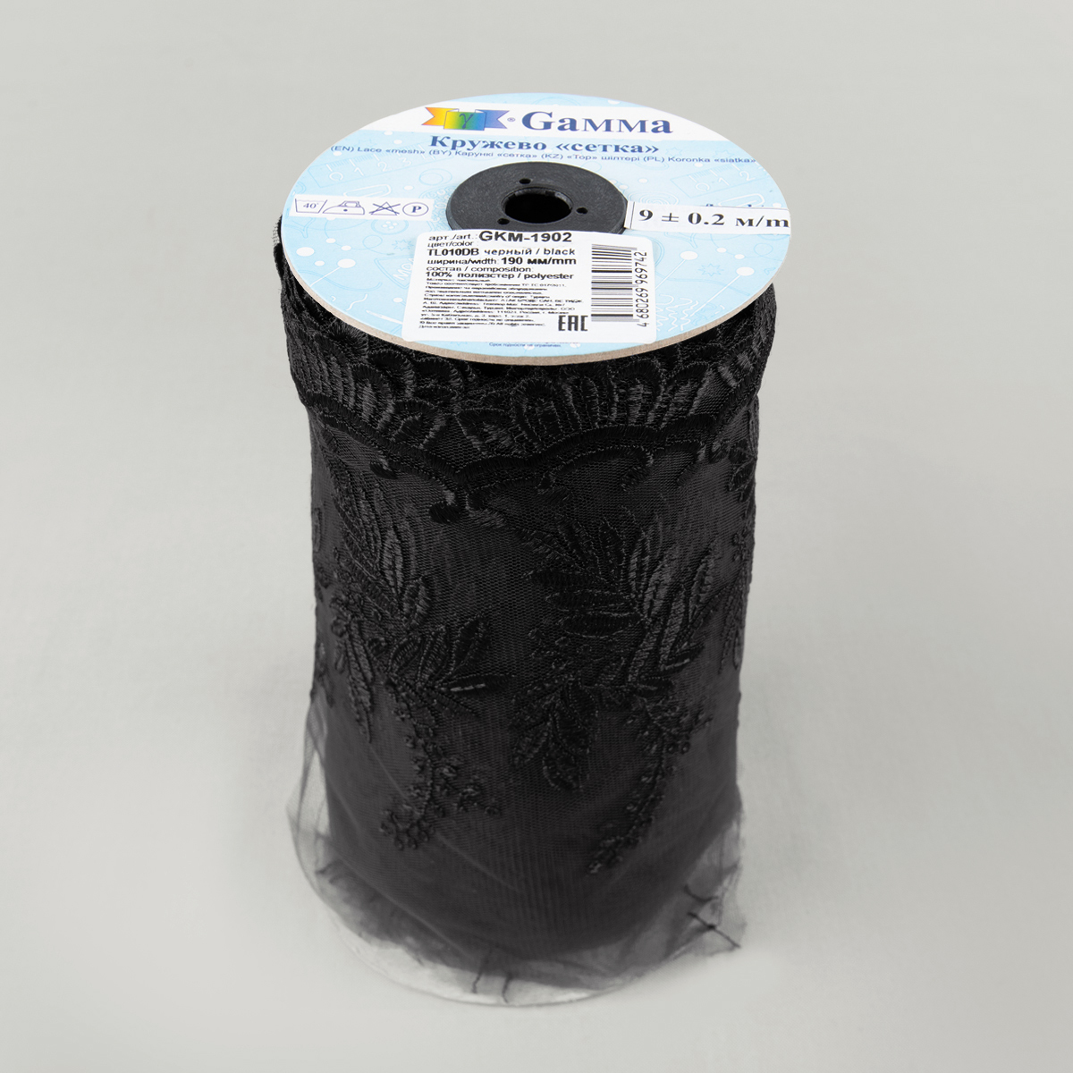 Кружево на сетке 190 мм / 10 м, черный, Gamma GKM-1902