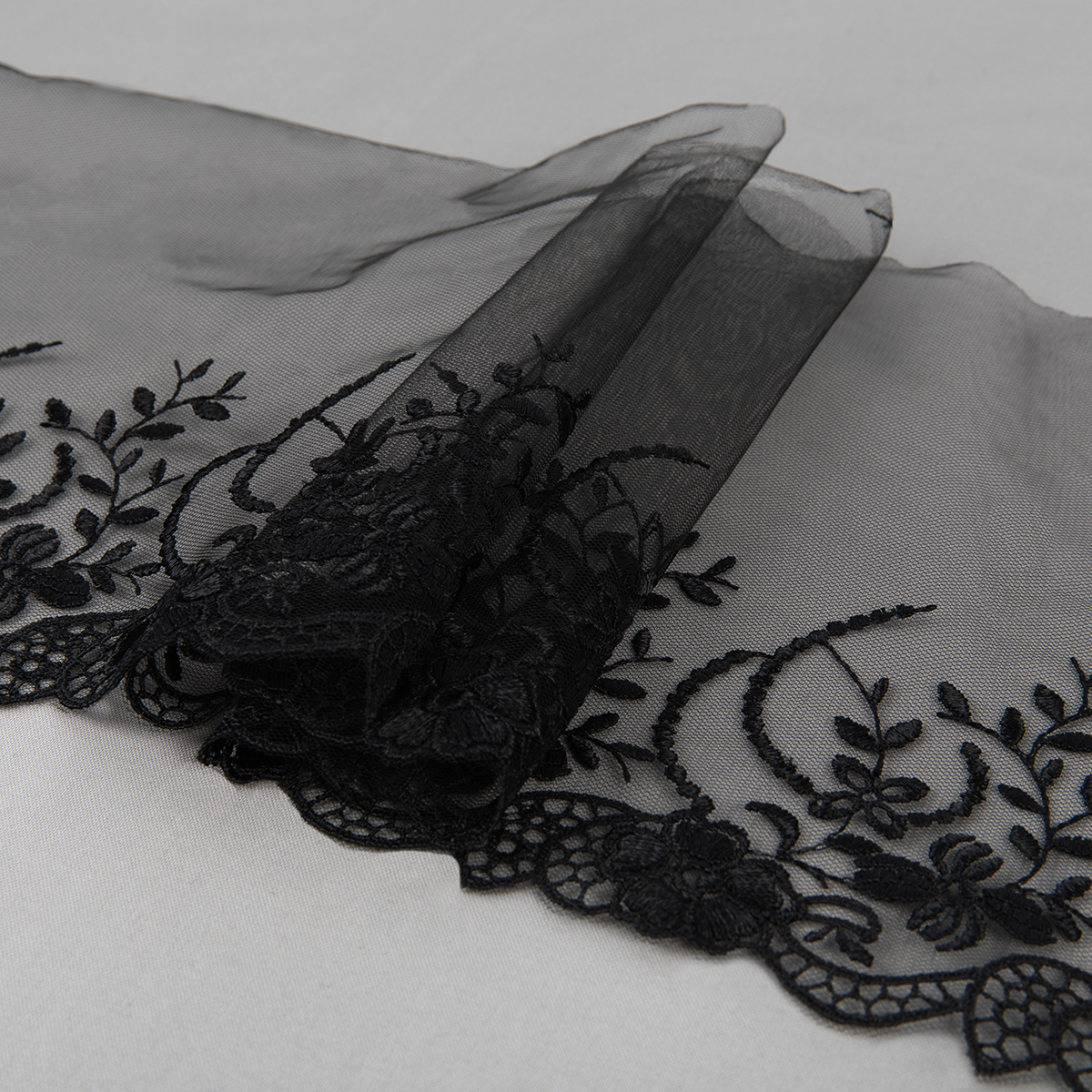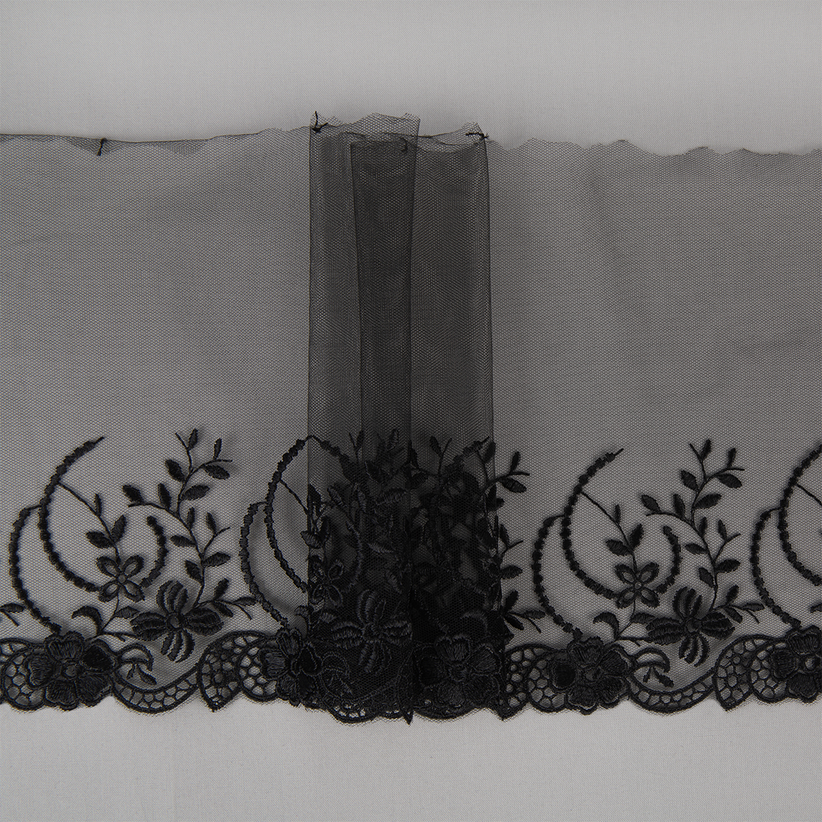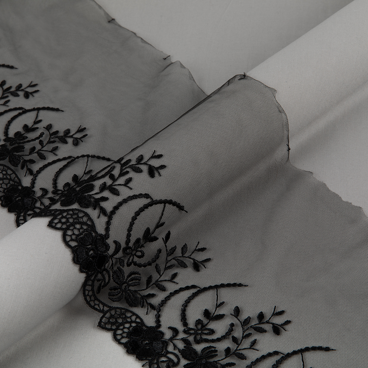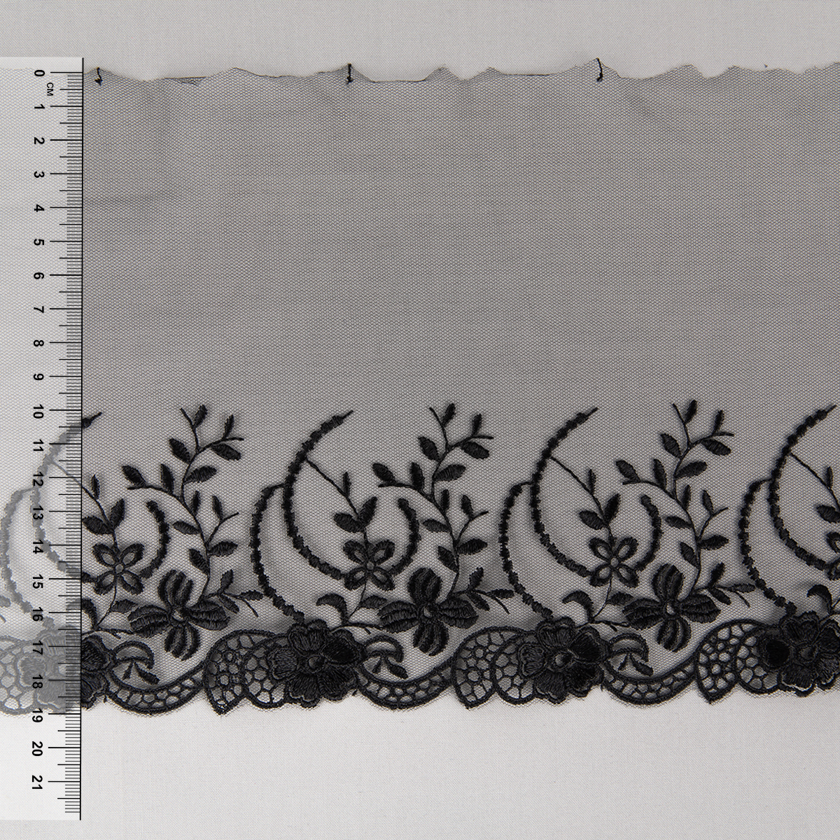 Кружево на сетке 190 мм / 10 м, черный, Gamma GKM-1904