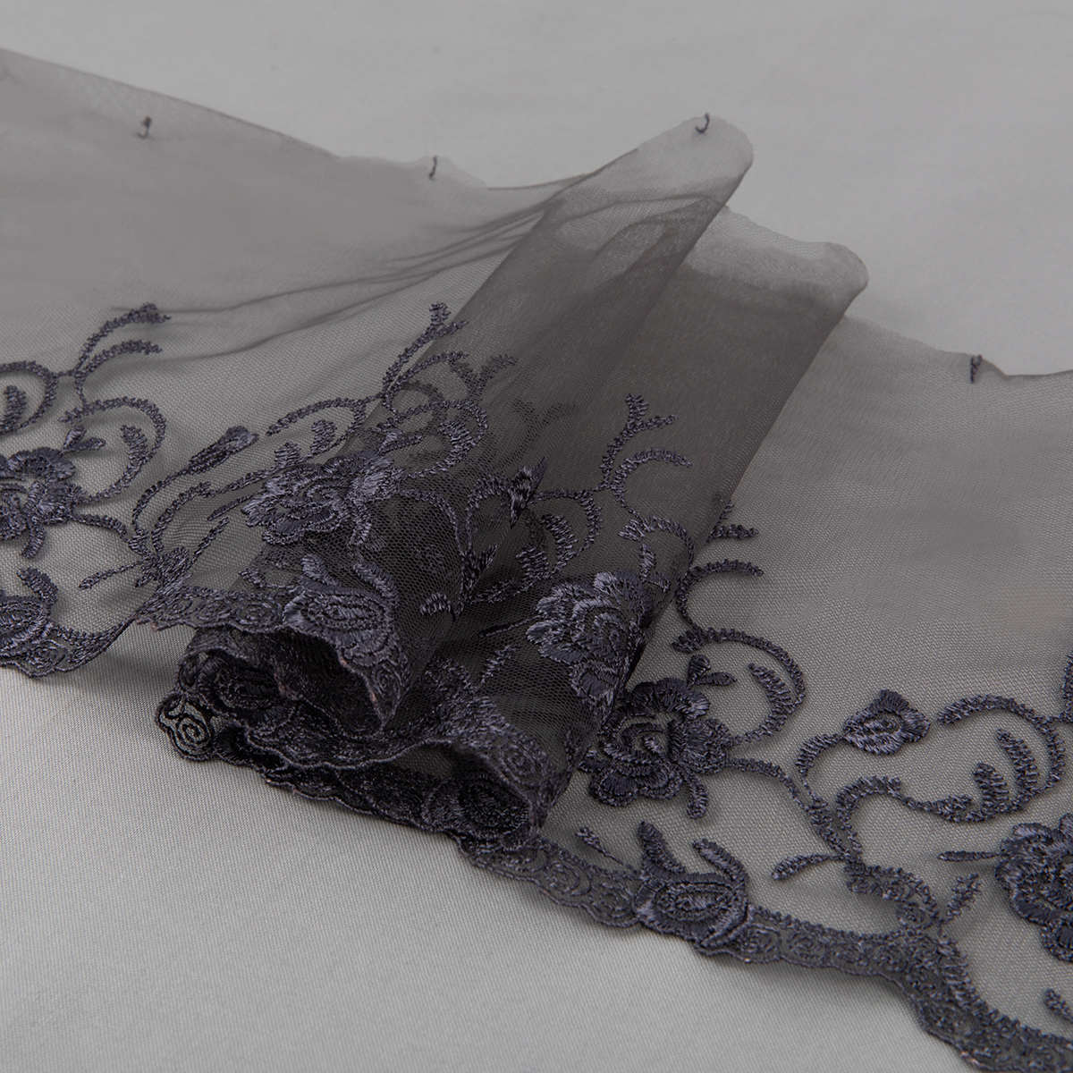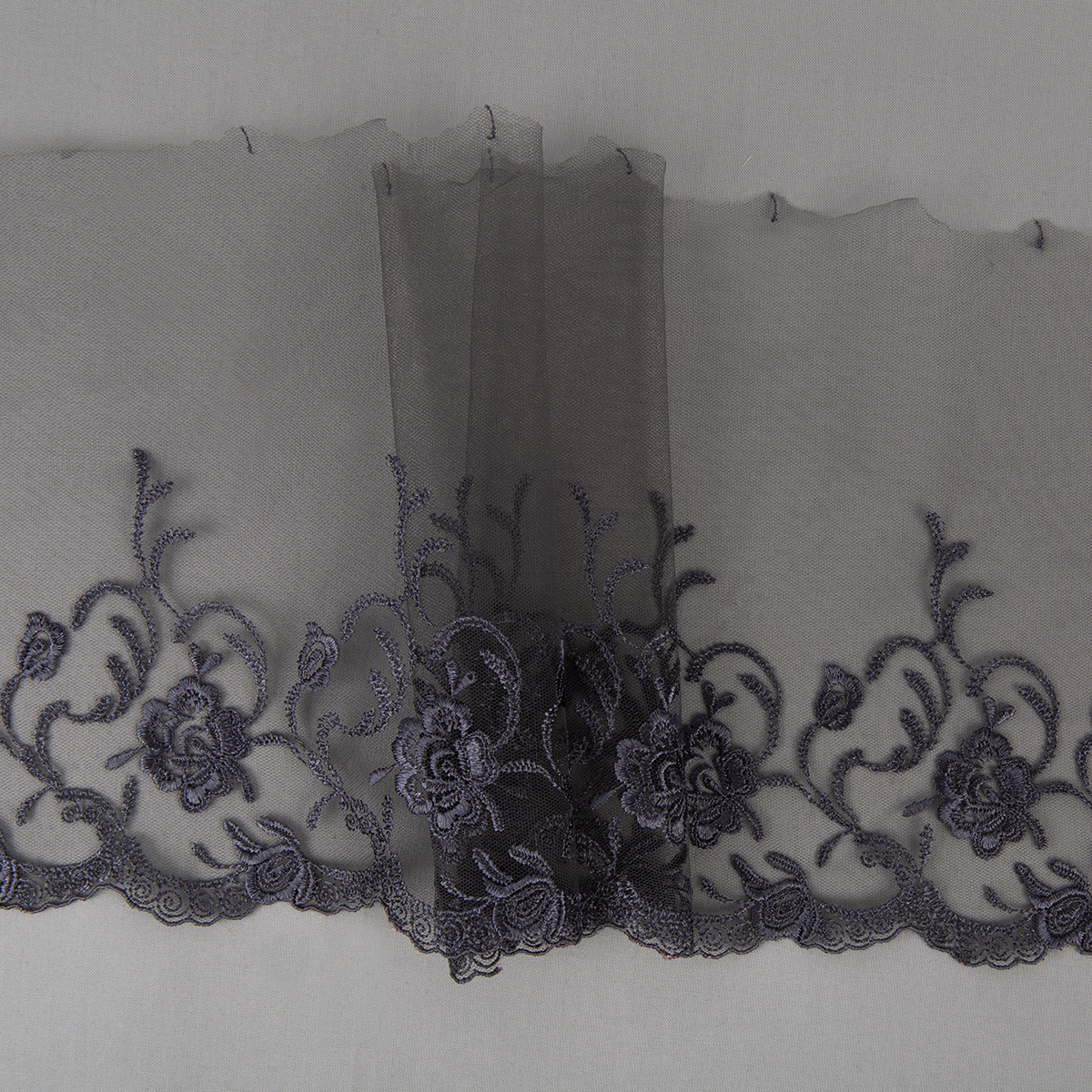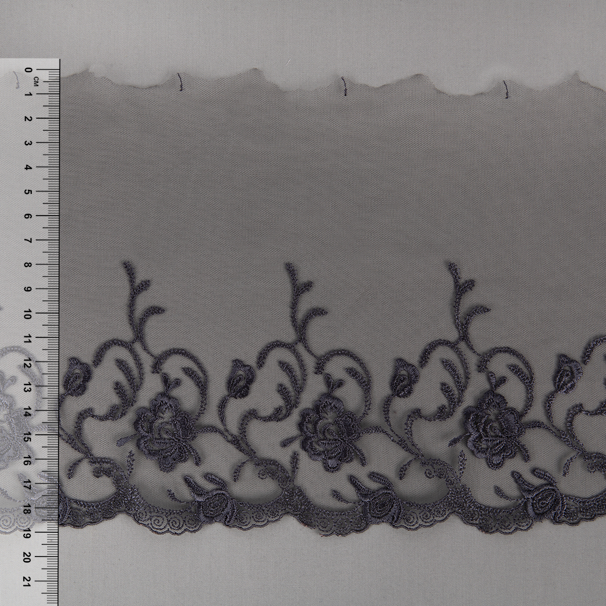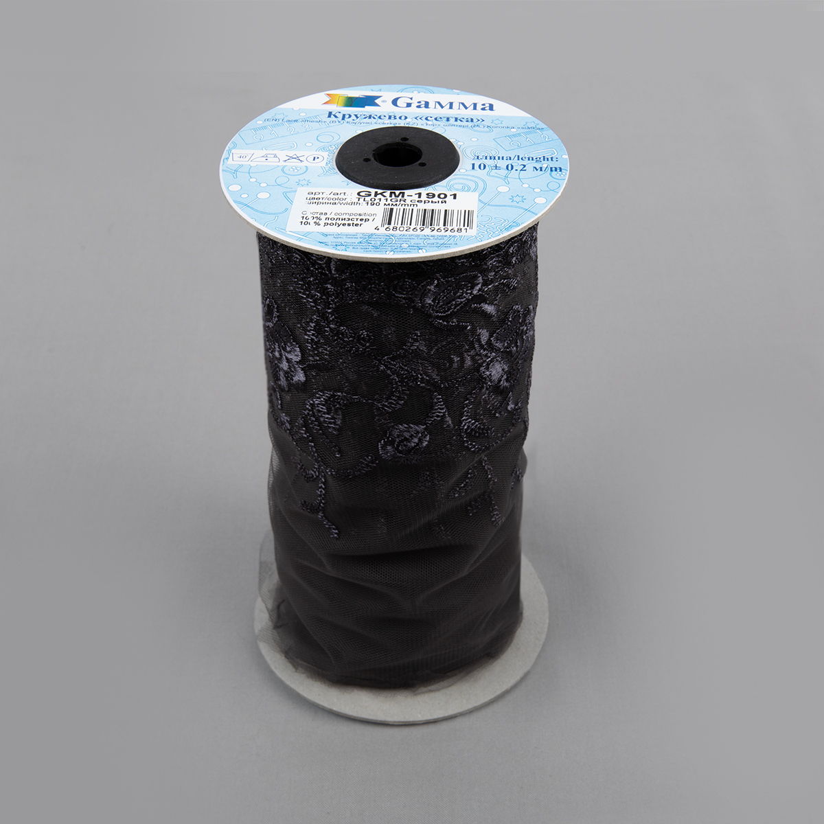 Кружево на сетке 190 мм / 10 м, серый, Gamma GKM-1901