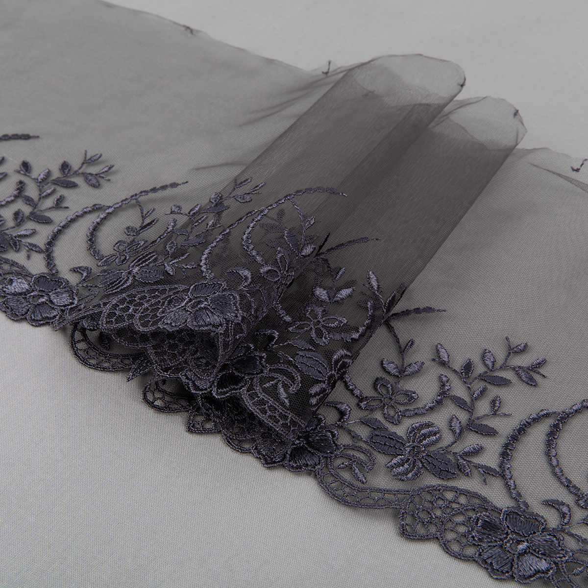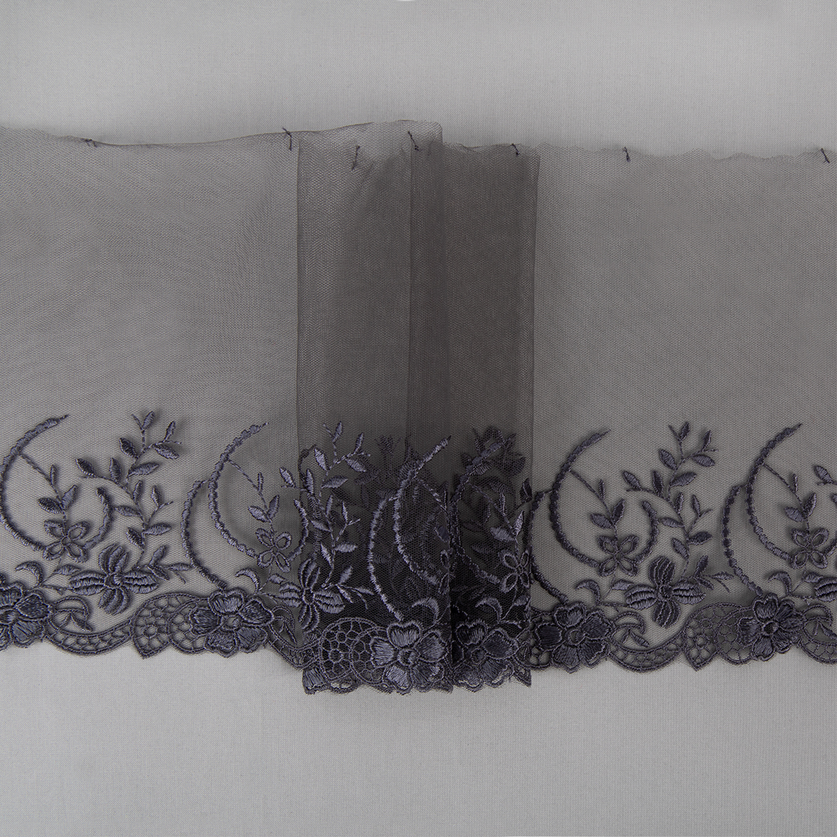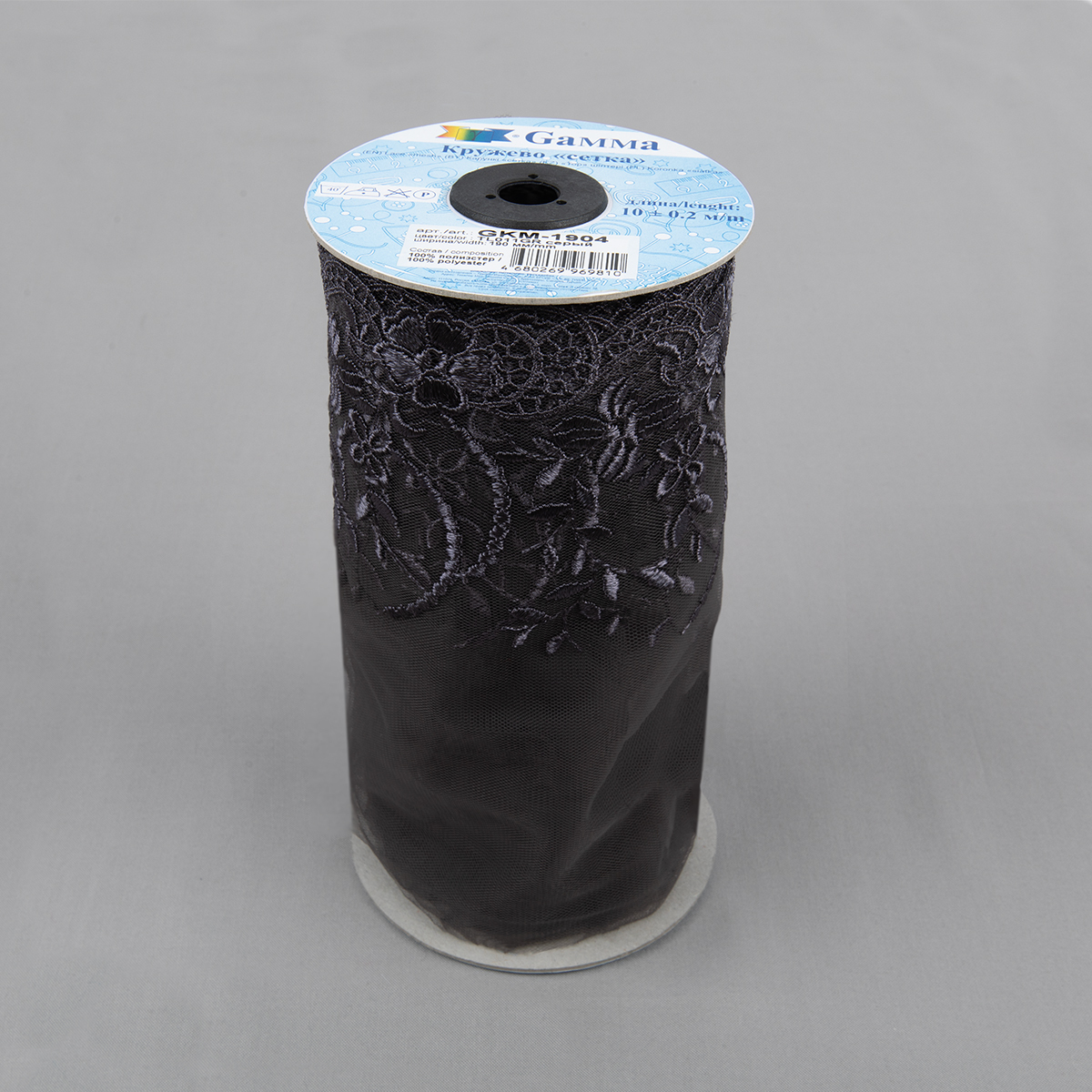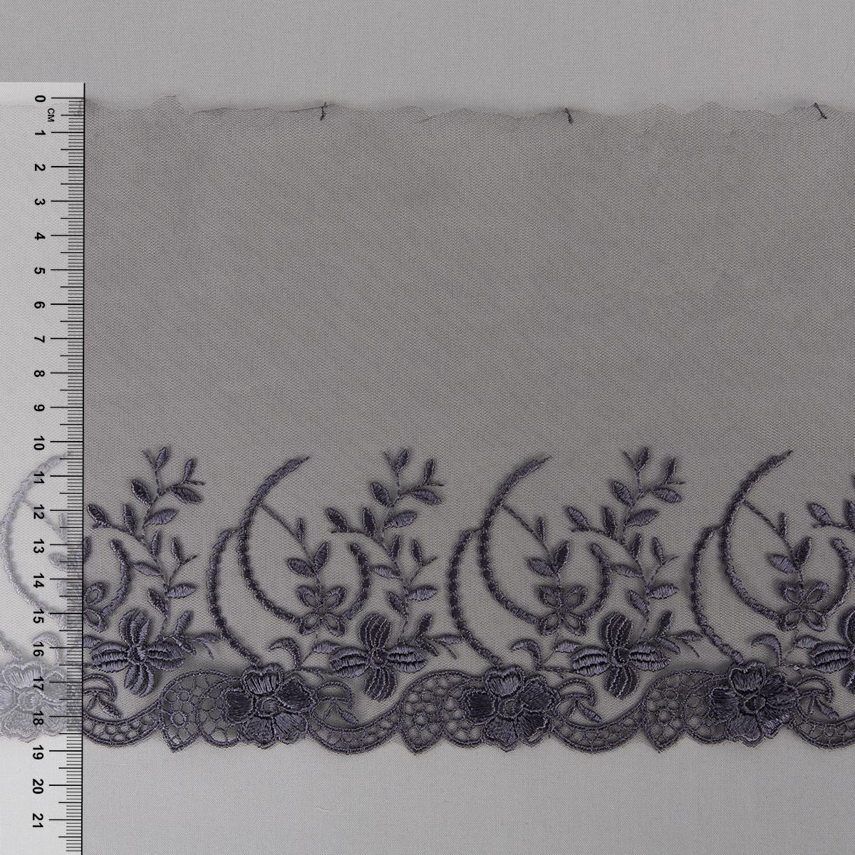Кружево на сетке 190 мм / 10 м, серый, Gamma GKM-1904
