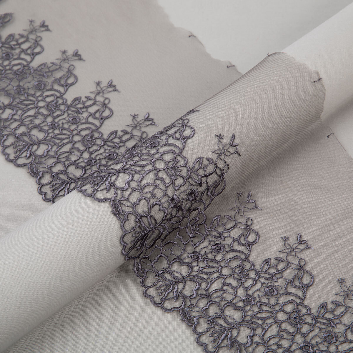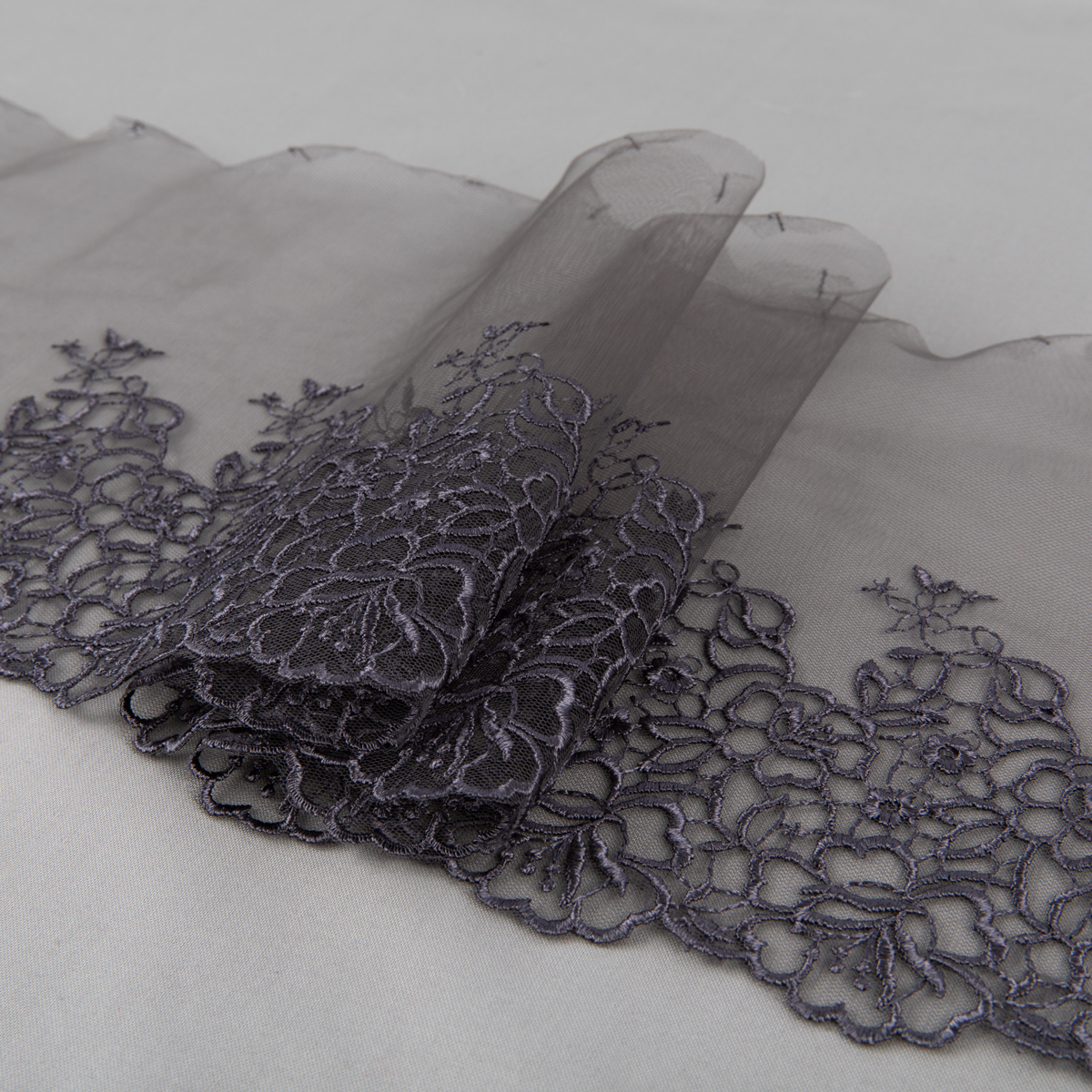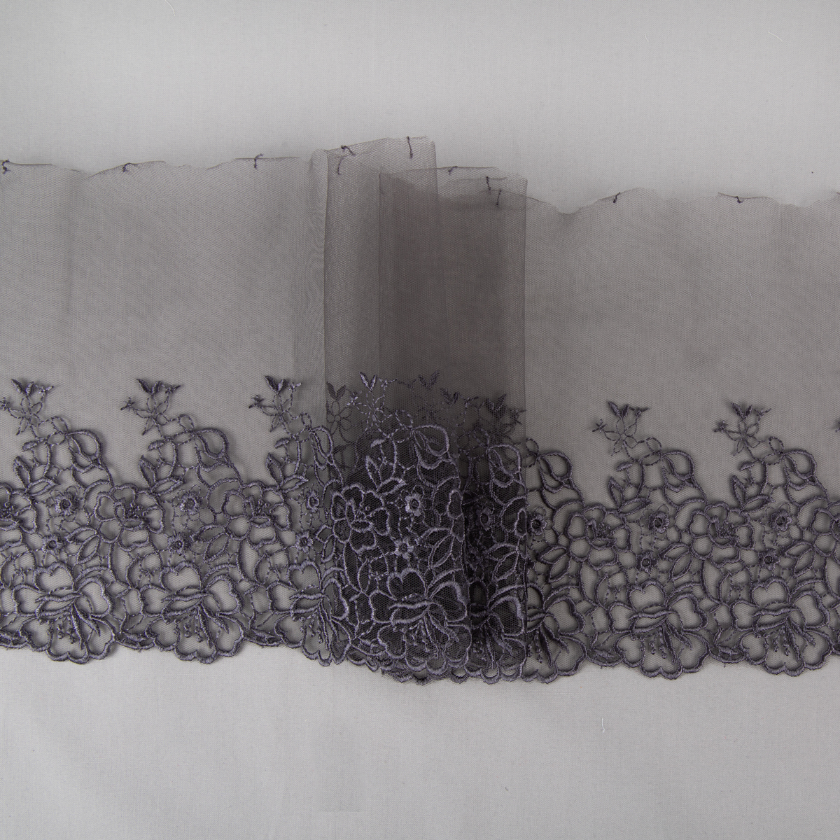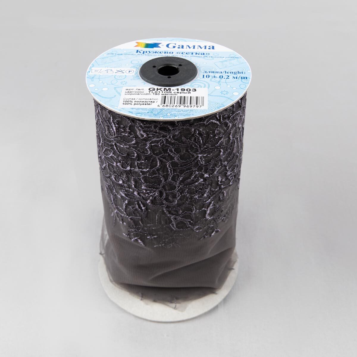 Кружево на сетке 190 мм / 10 м, серый, Gamma GKM-1903