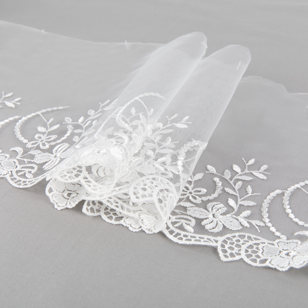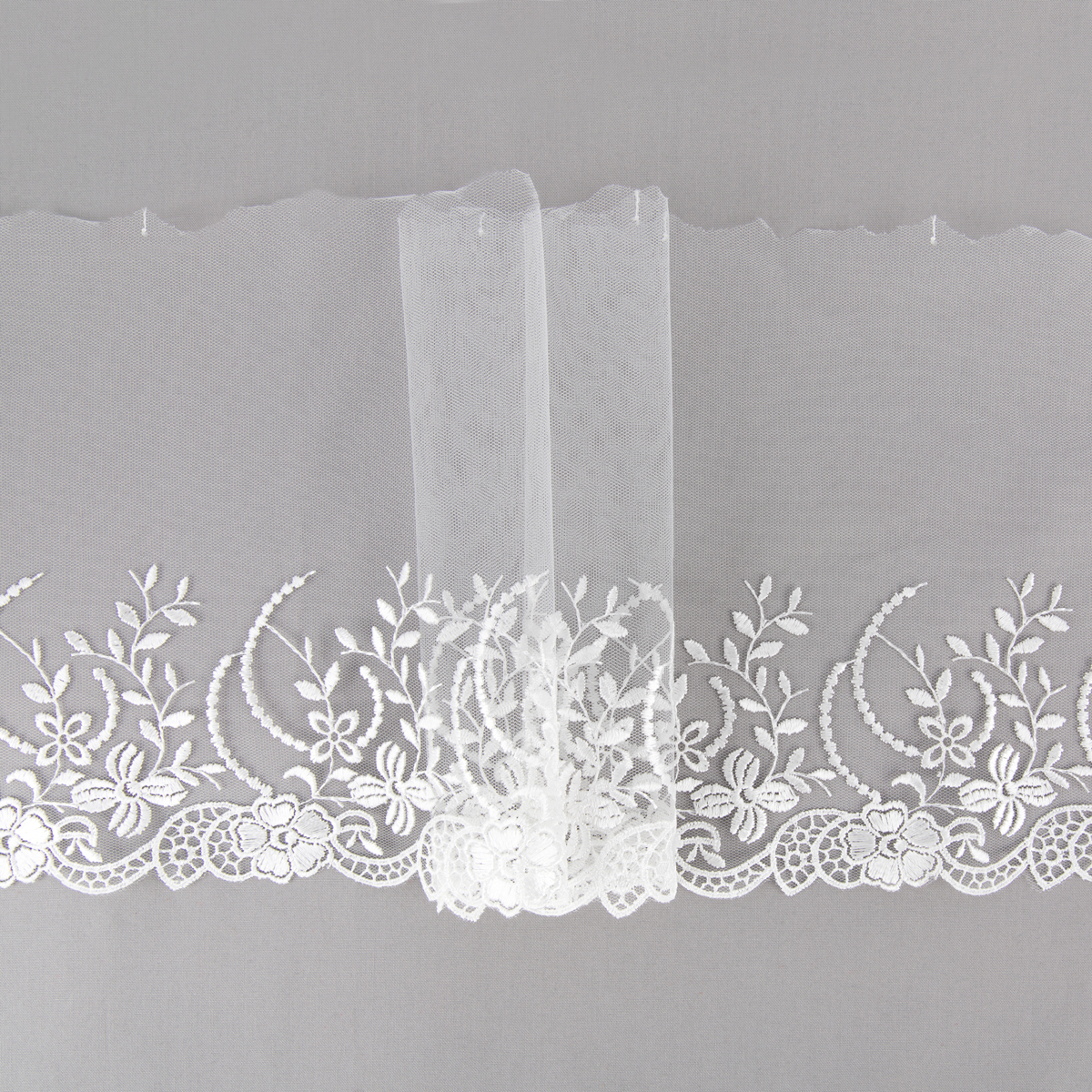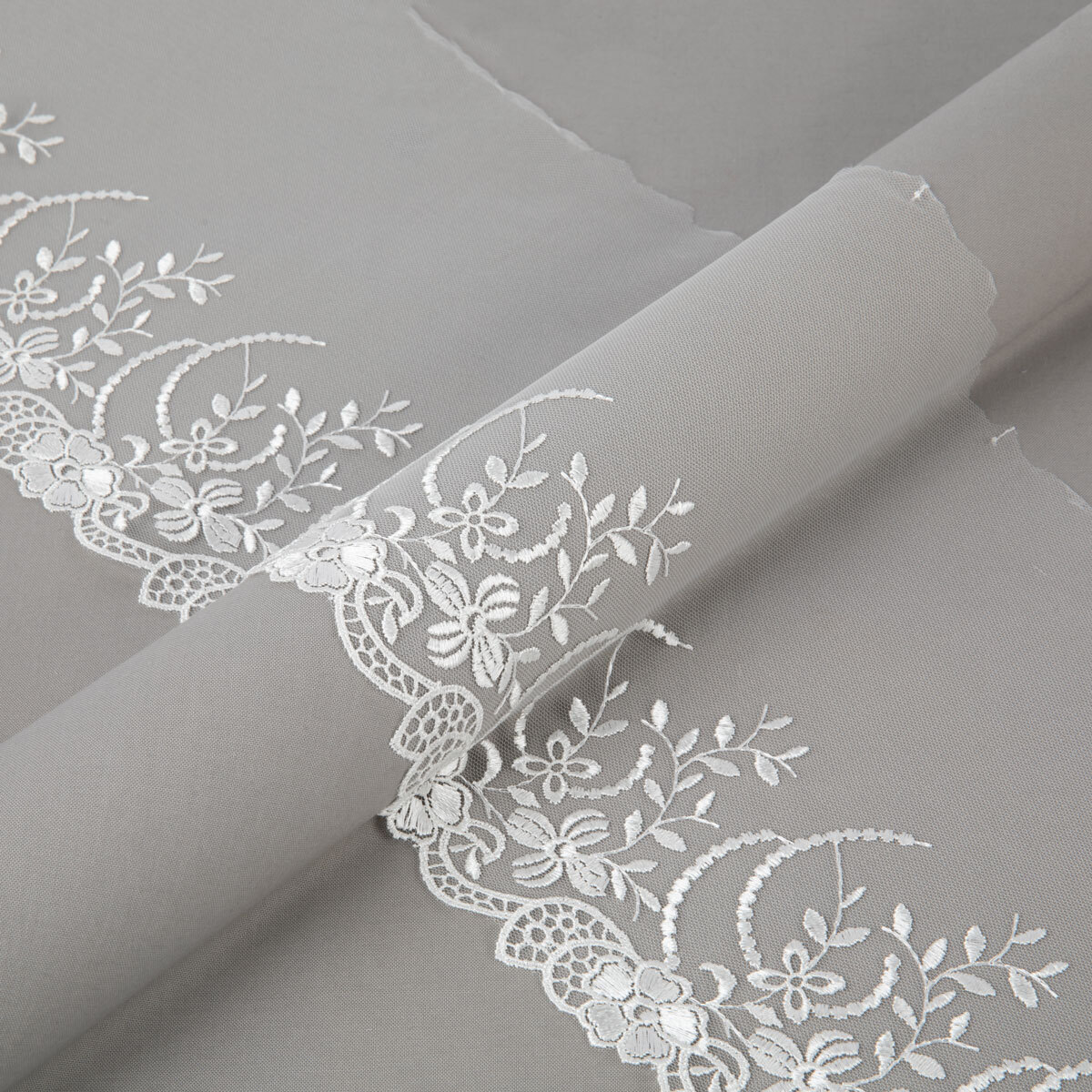 Кружево на сетке представляет собой кружевное полотно, основа которого сетка или фатин. применяется для декоративной отделки лёгкой женской одежды и домашнего текстиля.