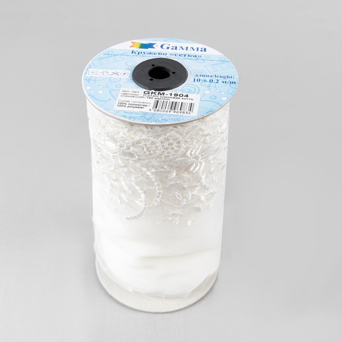 Кружево на сетке 190 мм / 10 м, слоновая кость, Gamma GKM-1904