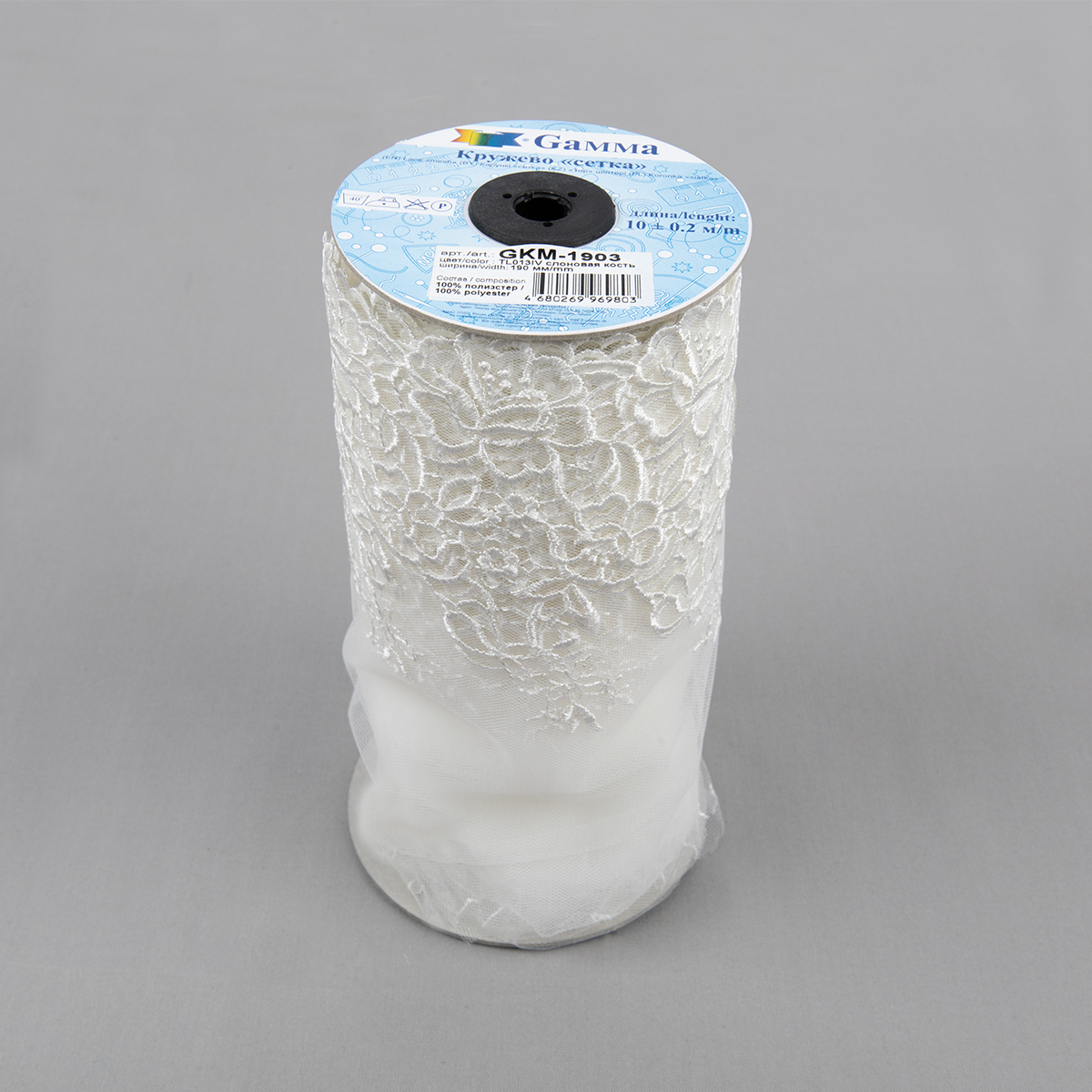 Кружево на сетке 190 мм / 10 м, слоновая кость, Gamma GKM-1903