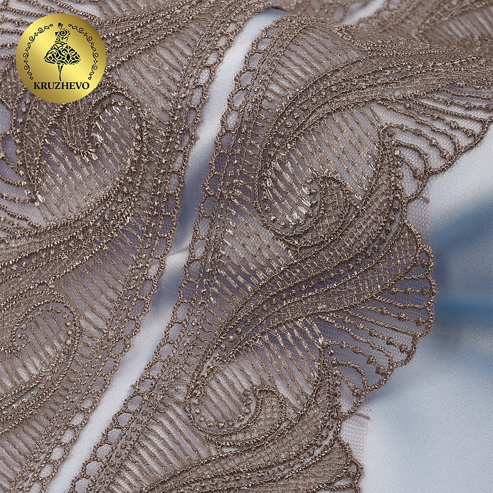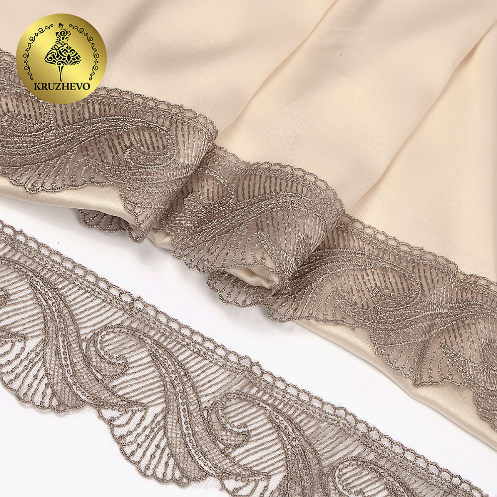 Кружево на сетке 70 мм, 2107 цв.N4815 кофе уп.13.71м, Kruzhevo