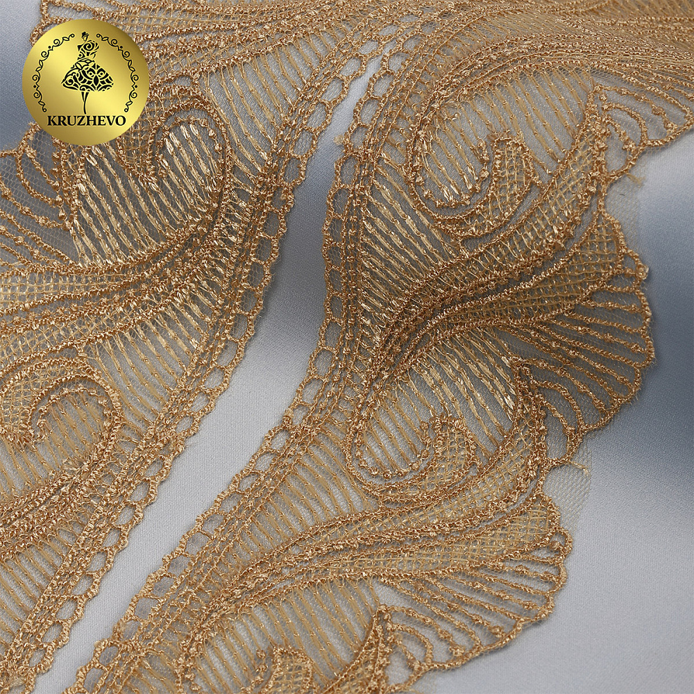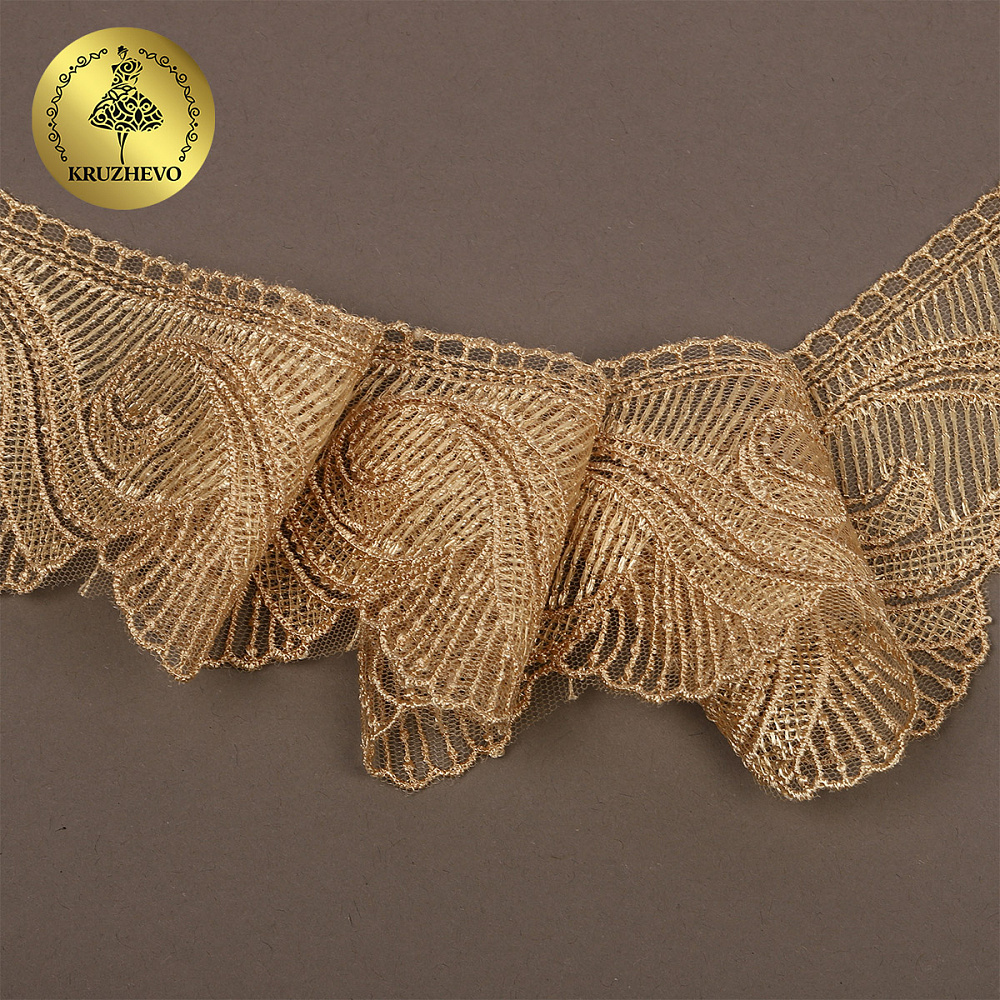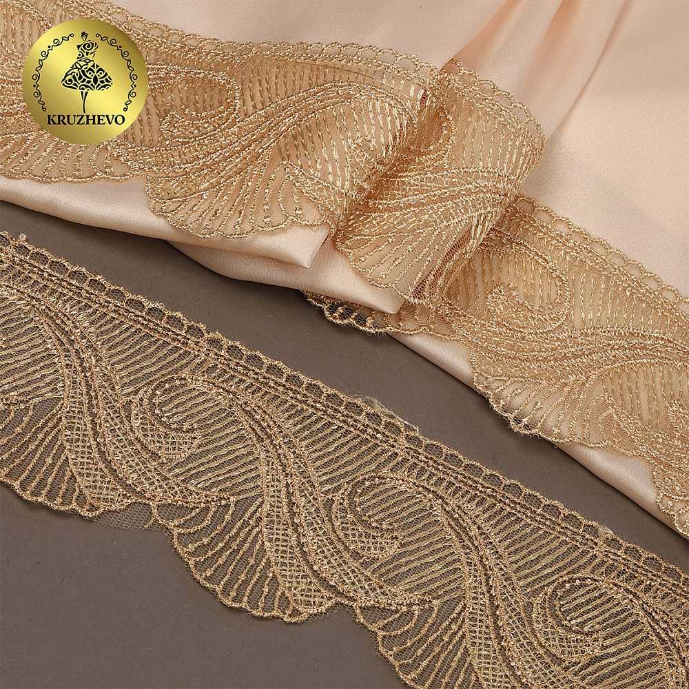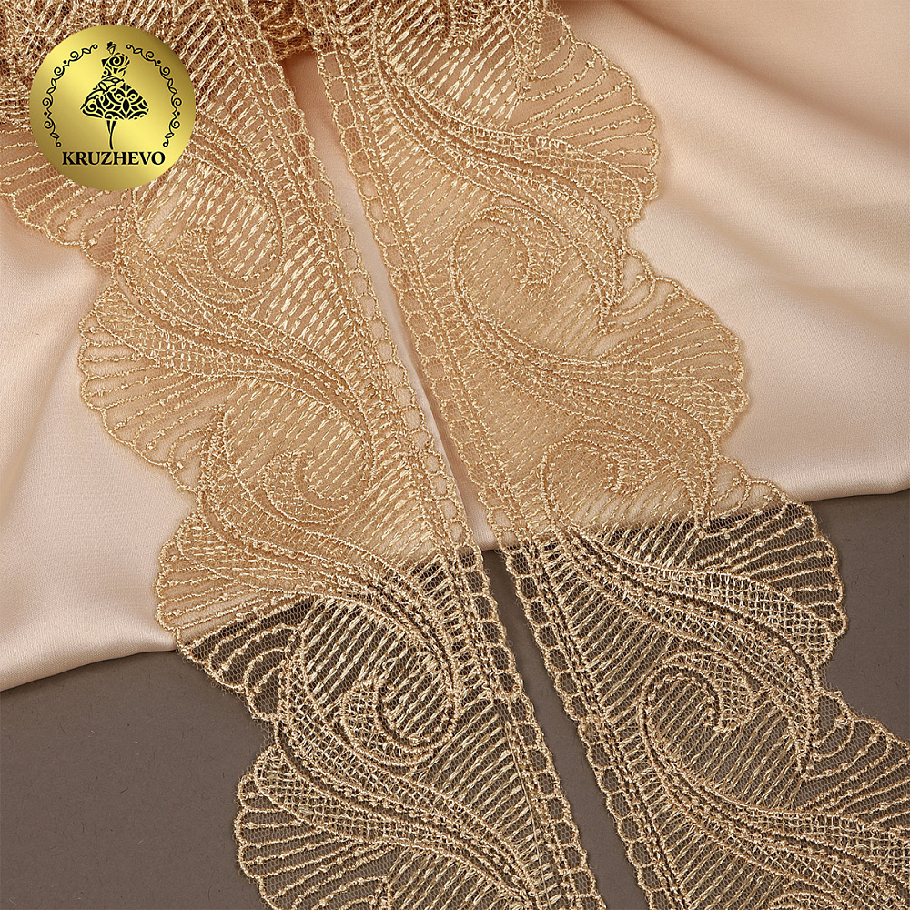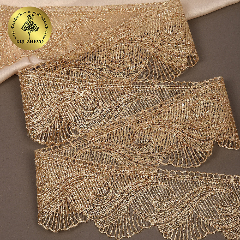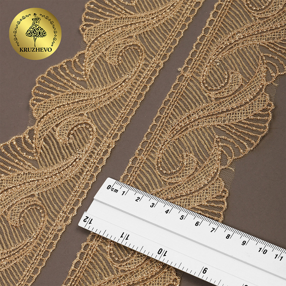 Кружево на сетке 70 мм, 2107 цв.N6115 золотисто-бежевый уп.13.71м, Kruzhevo