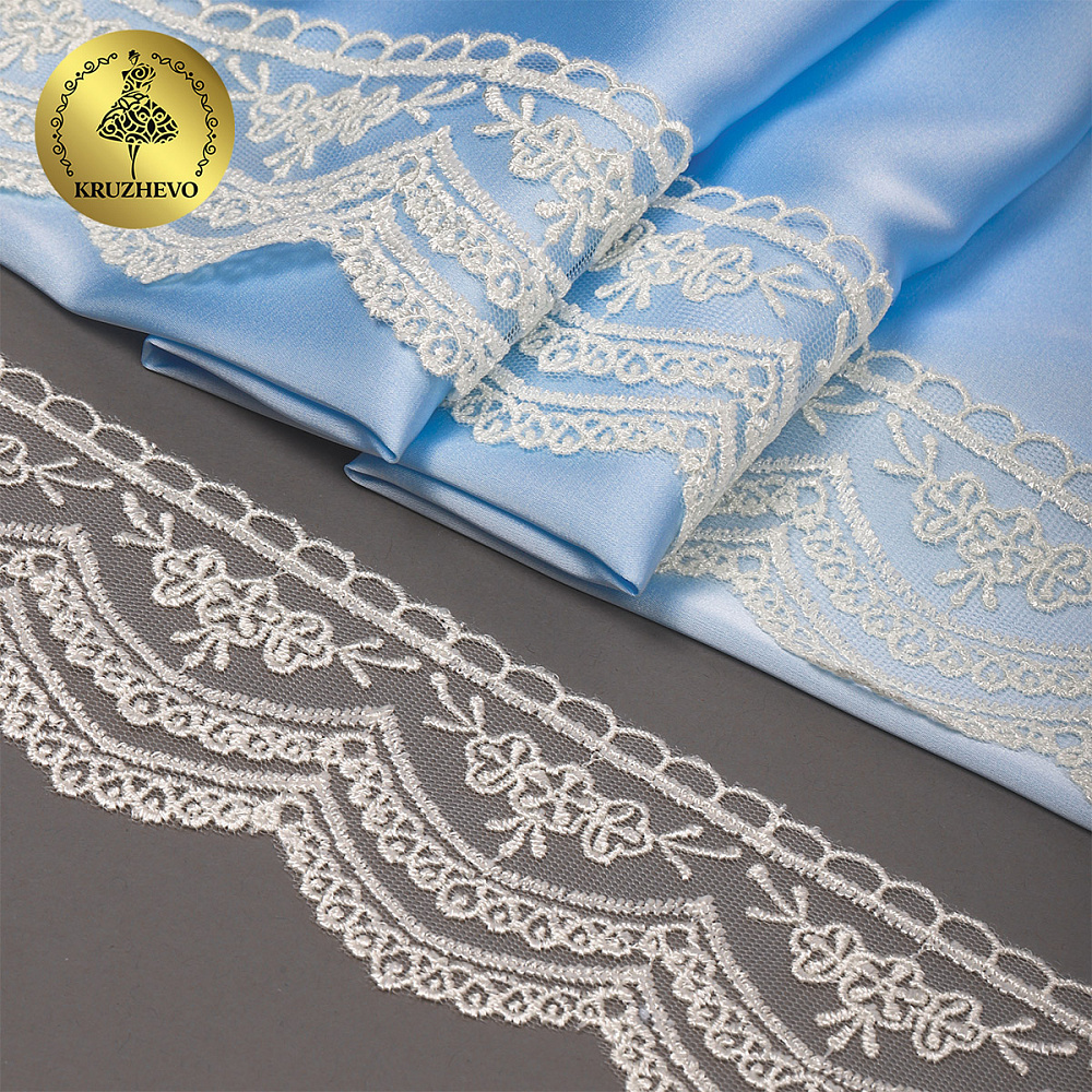 Очень красивое кружево на сетке. Кружево на сетке подходит, как для шитья, отделки, так и для скрапбукинга, изготовления кукол, свадебных украшений и одежды в стиле эко, бохо и шебби-шик. Также, подойдет для украшения скатерти и домашнего текстиля.