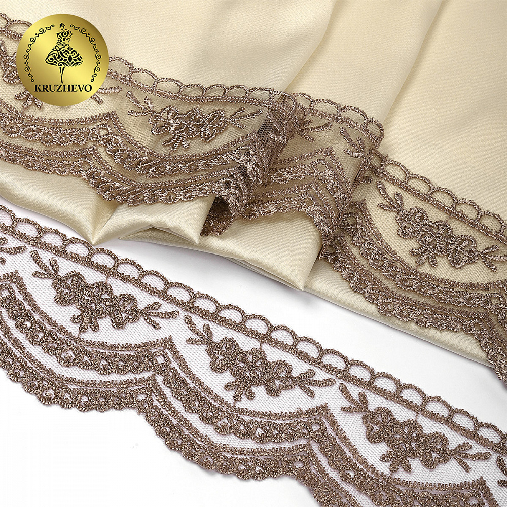Кружево на сетке 60 мм, 2110 цв.N4815 кофе уп.13.71м, Kruzhevo