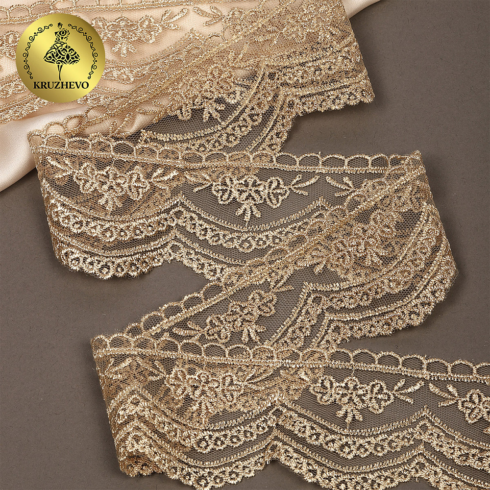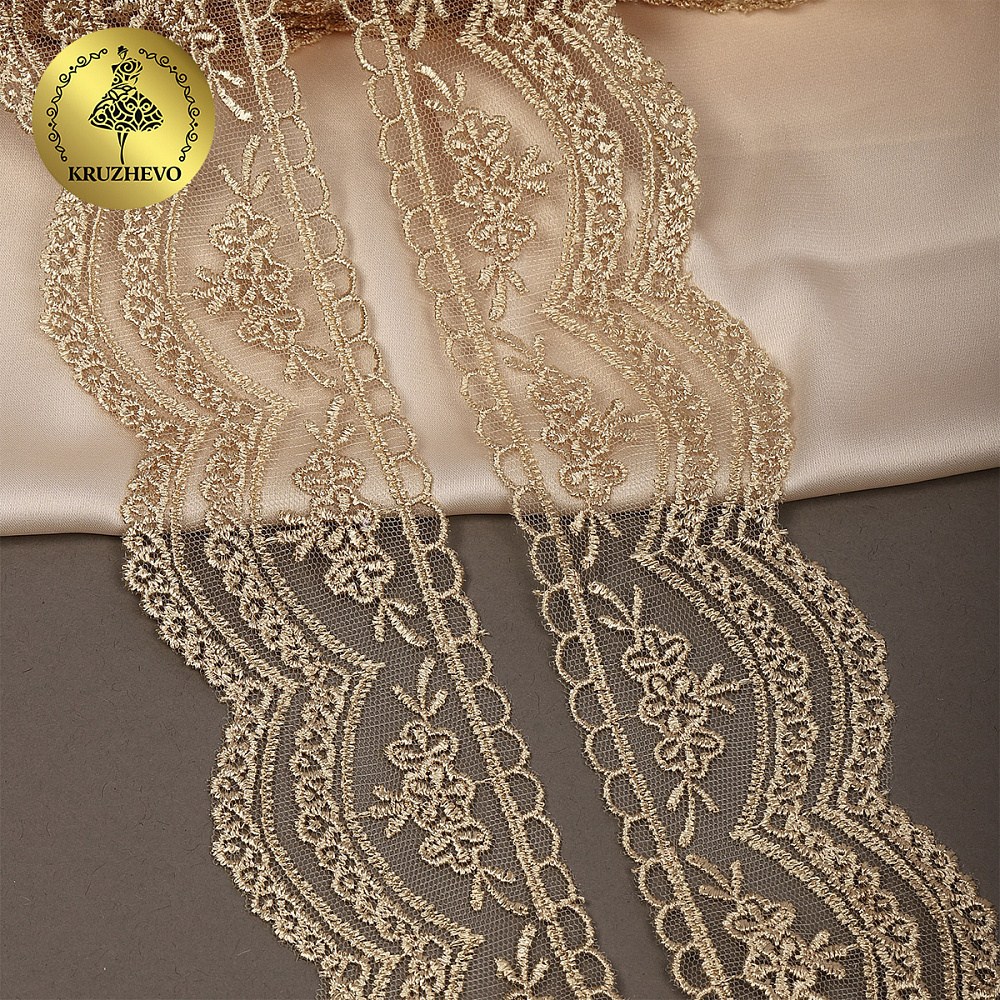 Кружево на сетке 60 мм, 2110 цв.N6115 золотисто-бежевый уп.13.71м, Kruzhevo