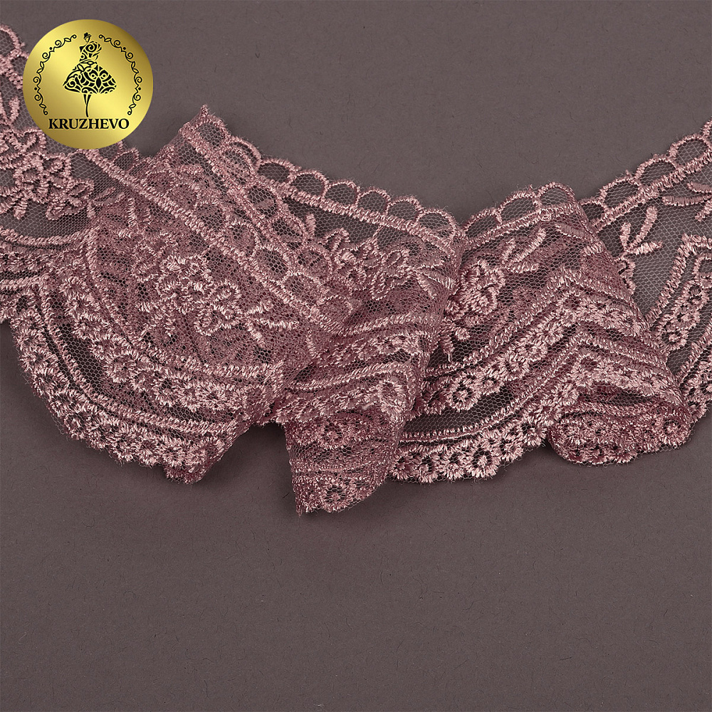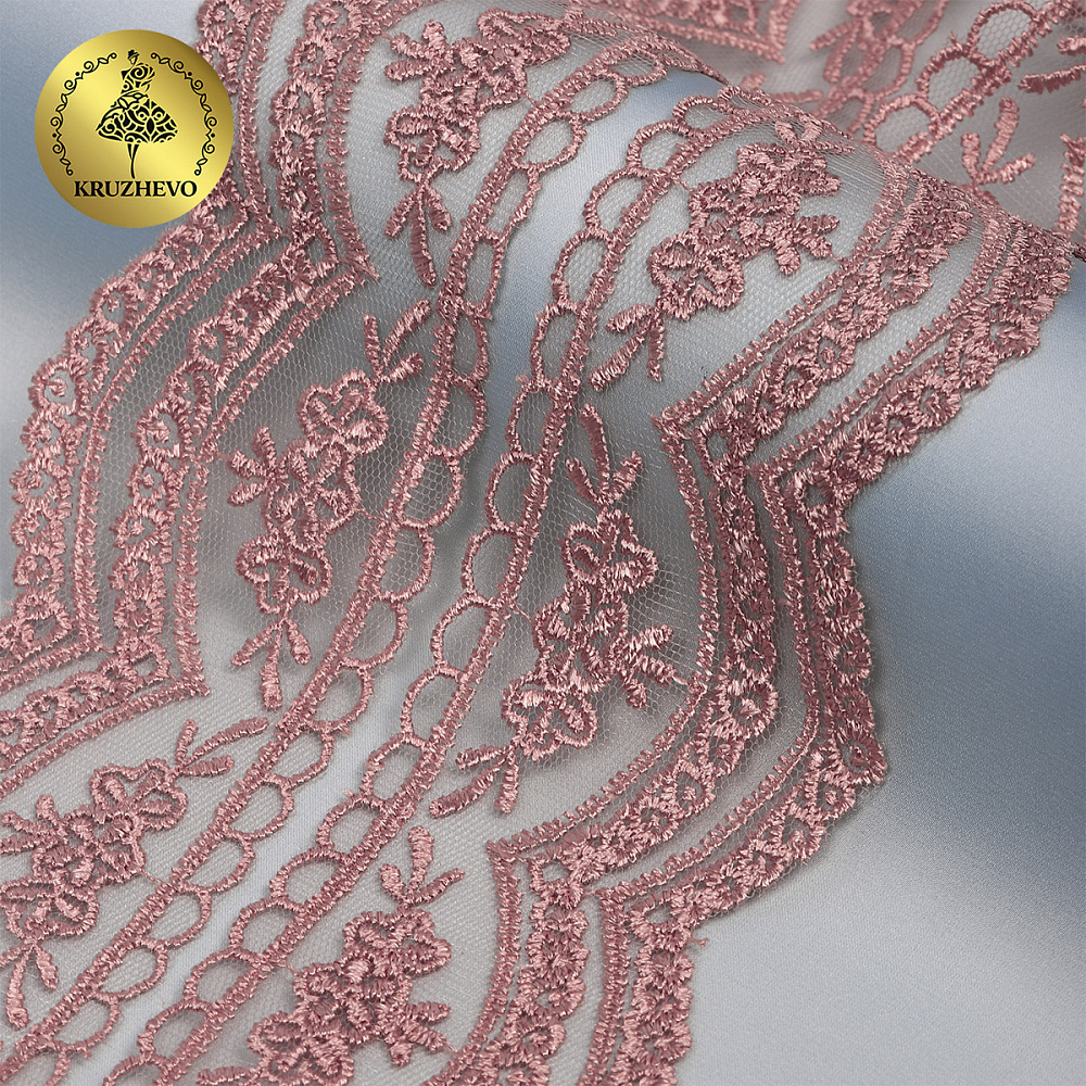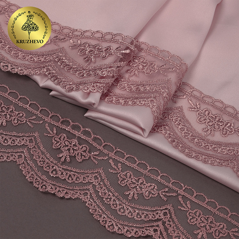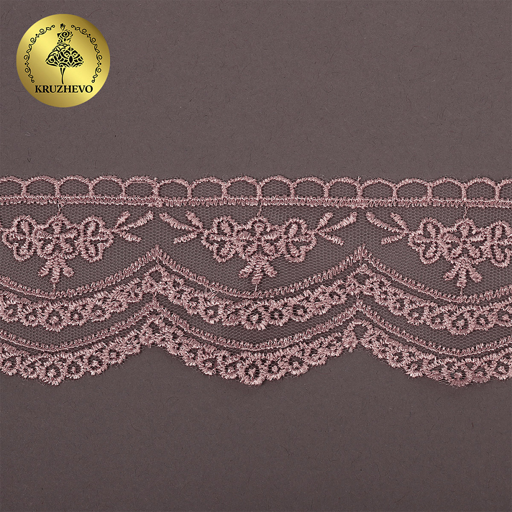 Кружево на сетке 60 мм, 2110 цв.N6615 розовая пудра уп.13.71м, Kruzhevo