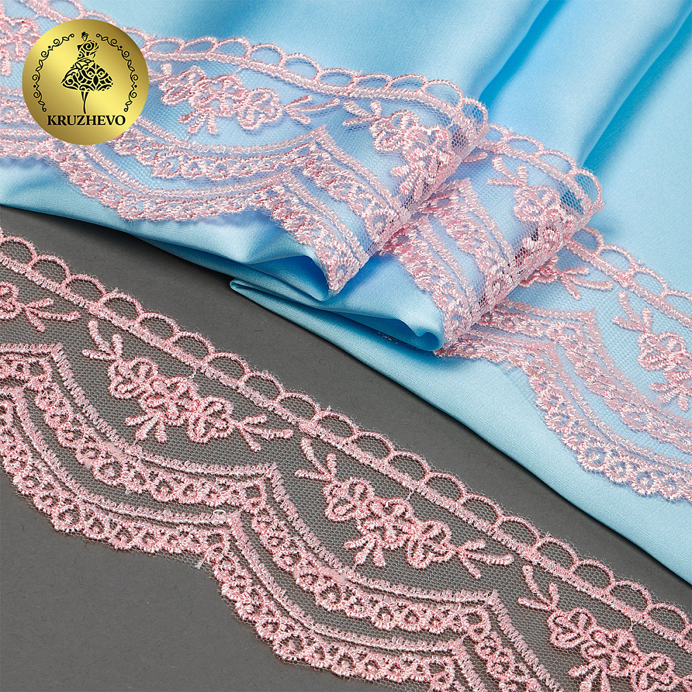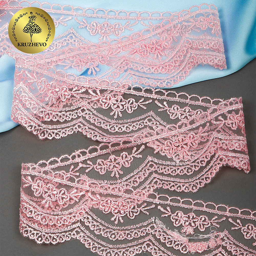 Кружево на сетке 60 мм, 2110 цв.R1815 розовый уп.13.71м, Kruzhevo