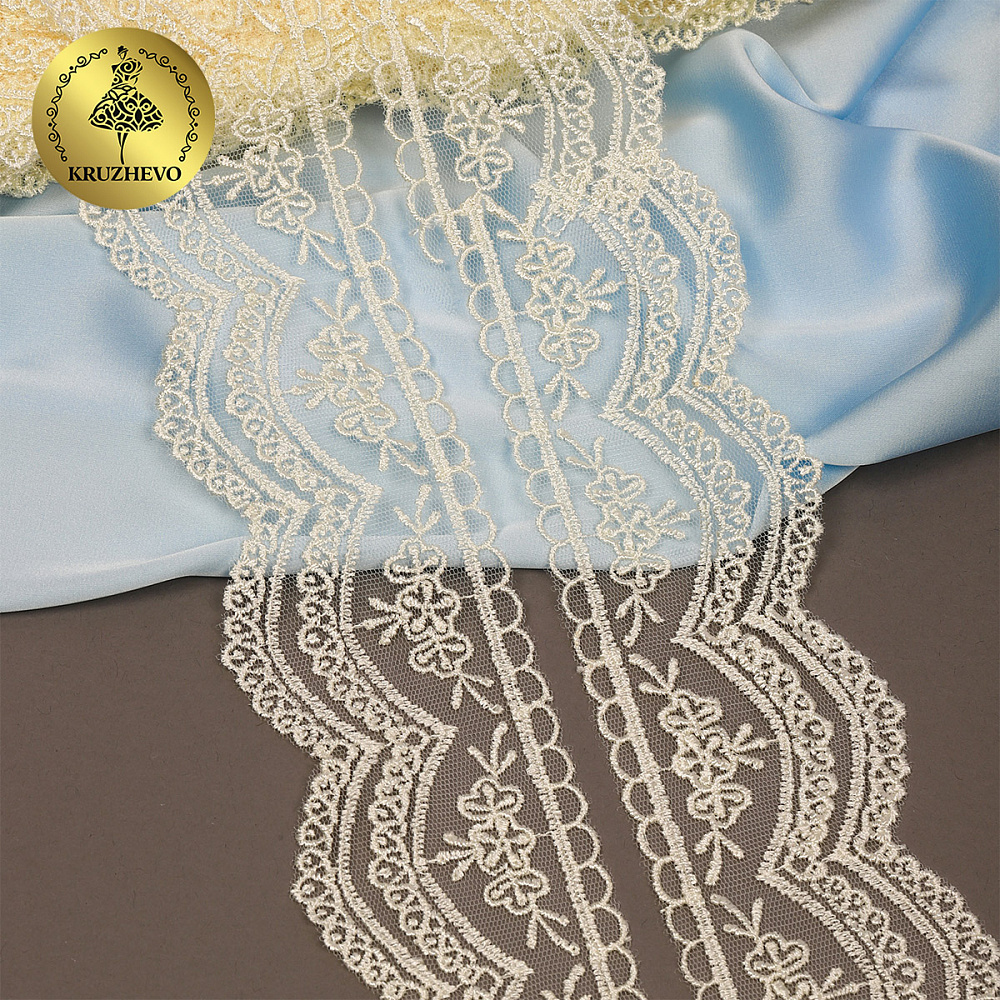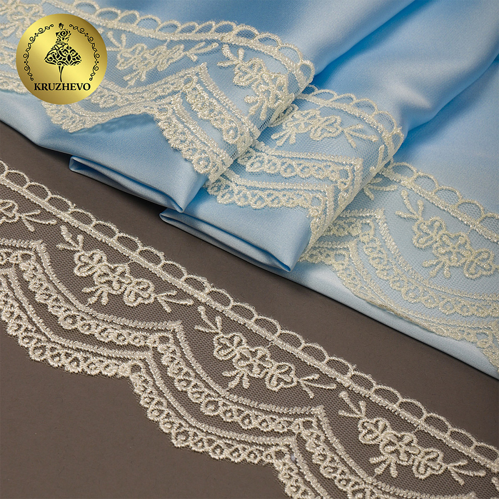 Очень красивое кружево на сетке. Кружево на сетке подходит, как для шитья, отделки, так и для скрапбукинга, изготовления кукол, свадебных украшений и одежды в стиле эко, бохо и шебби-шик. Также, подойдет для украшения скатерти и домашнего текстиля.