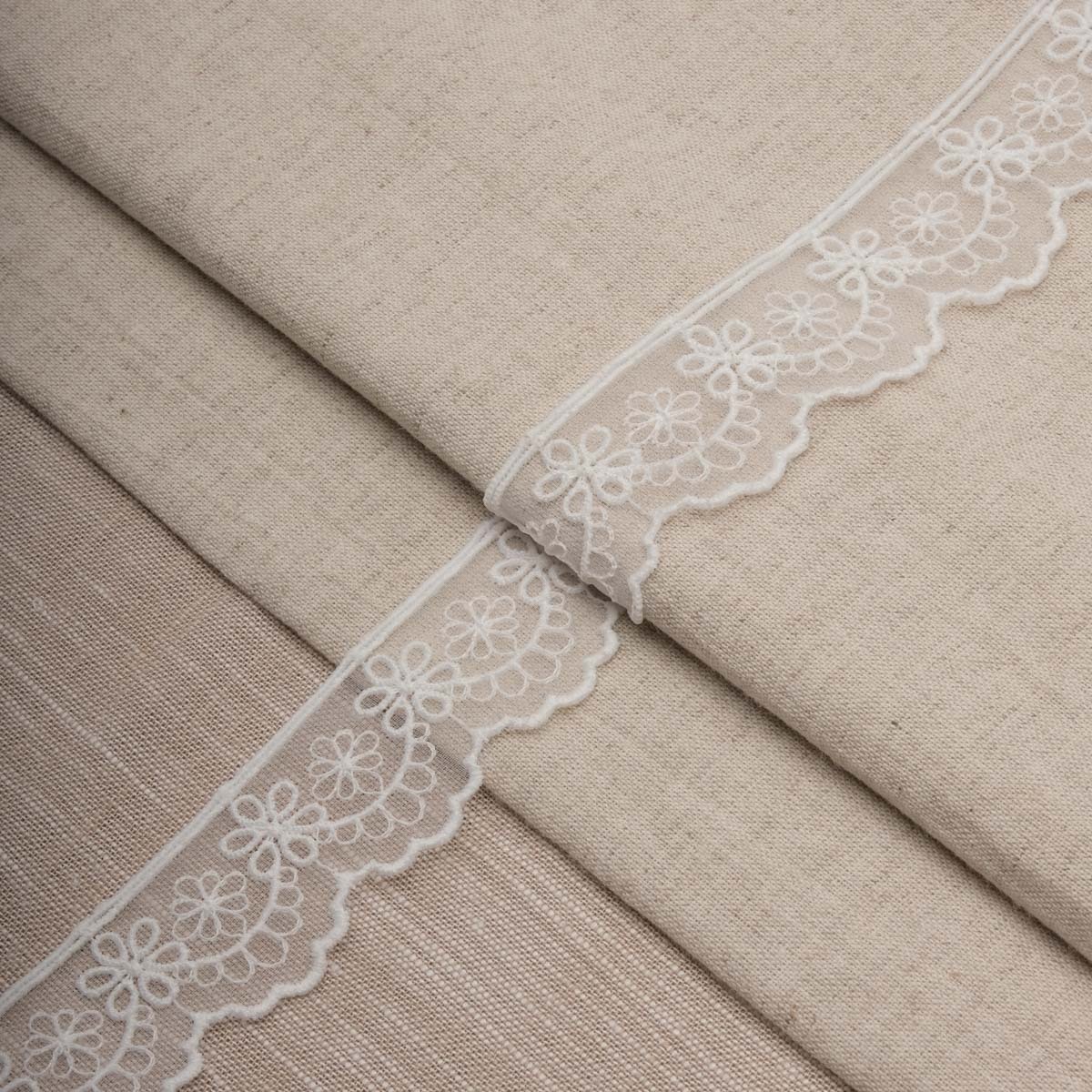 Кружево с вышивкой на сетке – полупрозрачное и тонкое, но при этом хорошо держит форму. Удачно сочетается различными видами тканей: атласом, сатином, бархатом, тонким трикотажем. Вещи, отделанные капроновым кружевом, создают впечатление уюта и романтики. Применение: – отделка нарядной одежды, одежды для выступлений, нижнего белья; – украшение штор, скатертей и другого домашнего текстиля; – оформление подарочной упаковки или блокнотов; – для оригинальных аппликаций; – создание брошей, заколок и других авторских украшений. Рекомендации по уходу: стирка в деликатном режиме при температуре не выше 30 градусов. Используйте специальный мешочек для стирки. Гладить запрещено. Цвет: молочный. Материал: 100% полиэстер. Размер: ширина 3 см, длина 13,7 м.