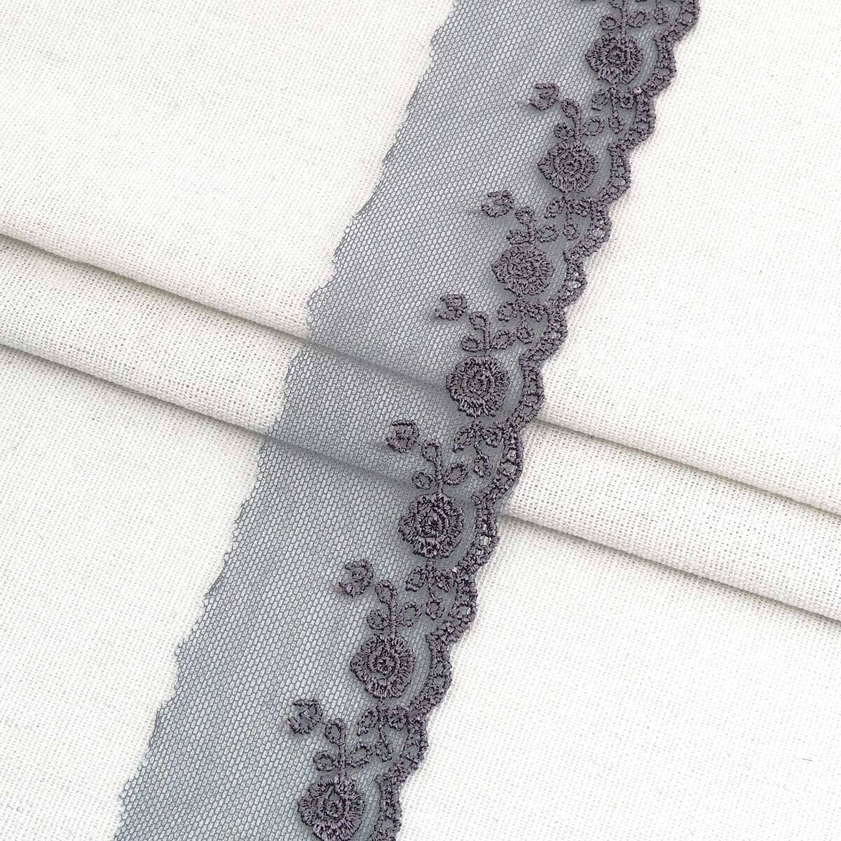 Кружево на сетке 45 мм / 12 метров, 21477 т.серый