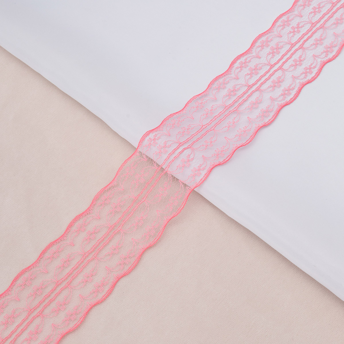 Кружево на сетке 45 мм / 3 метра ±4 см, ярко-розовый, 3AR3730
